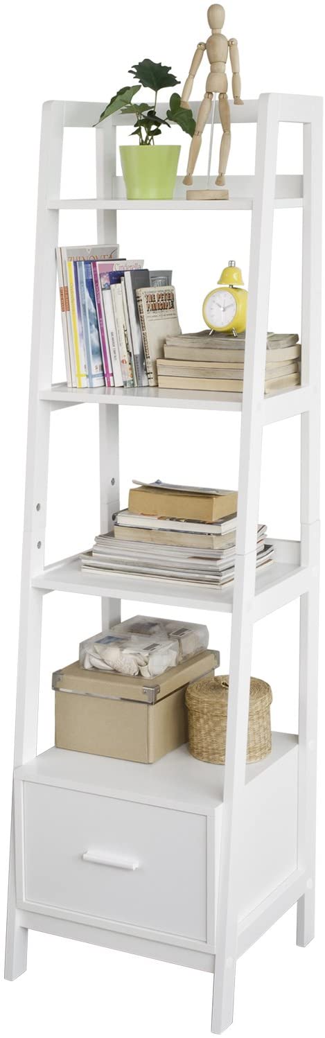 Scaffale a scala moderno con 1 cassetto Lo scaffale moderno è molto versatile che corrisponde a qualsiasi ambiente.Perfetto per presentare sopramobili e decorazioni o anche semplicemente come libreria. Molto robusto e stabile, Lo scaffale può essere caricato fino a 75 kg. Scaffale a scala moderno è molto versatile che corrisponde...