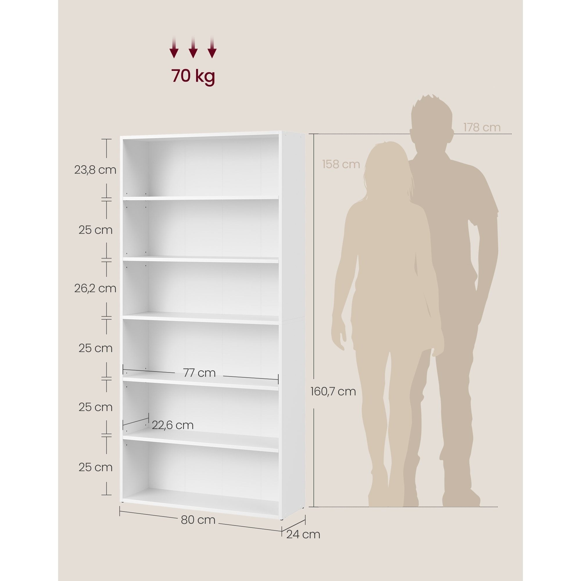 - 【SPAZIOSA E REGOLABILE】Misurando 24 x 80 x 160,7 cm, questa libreria a 6