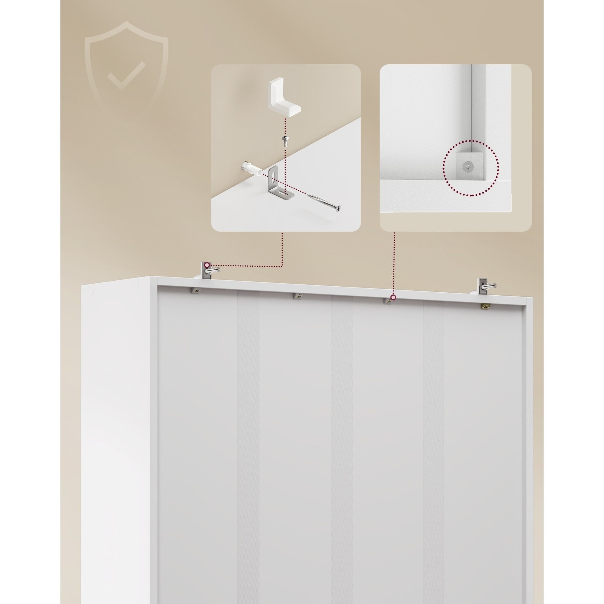 - Il kit antiribaltamento aiuta a fissarlo alla parete per maggiore stabilità e sicurezza