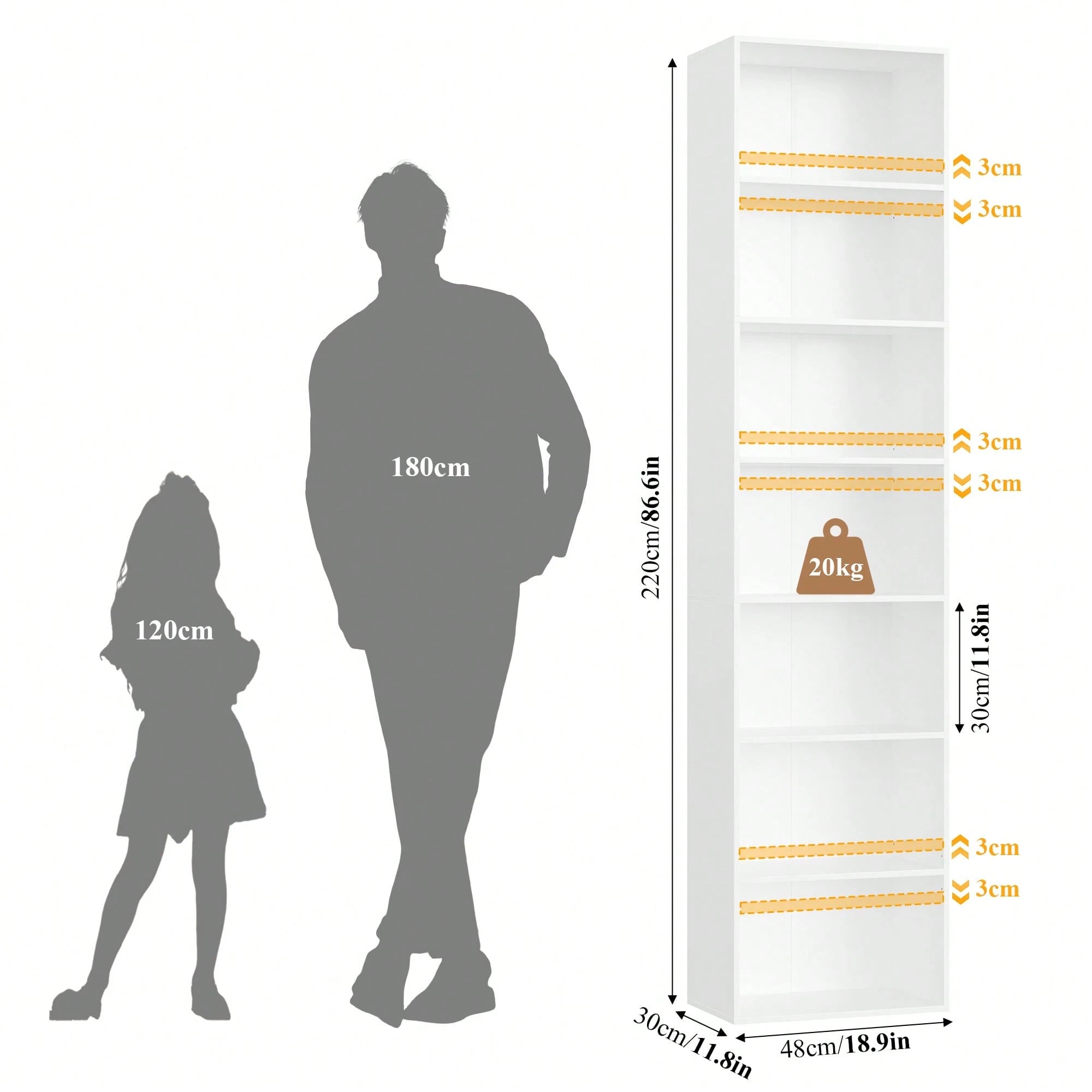 - Con dimensioni generose di 48 x 30 x 220 cm, offre ampio spazio per libri, decorazioni e oggetti personali.