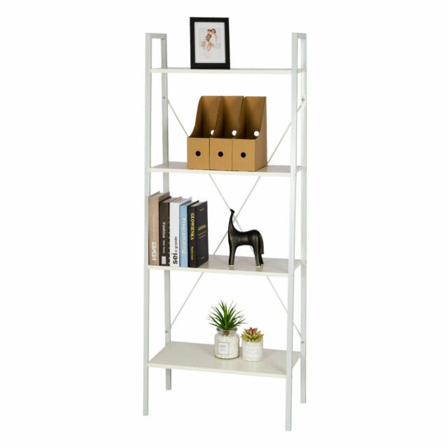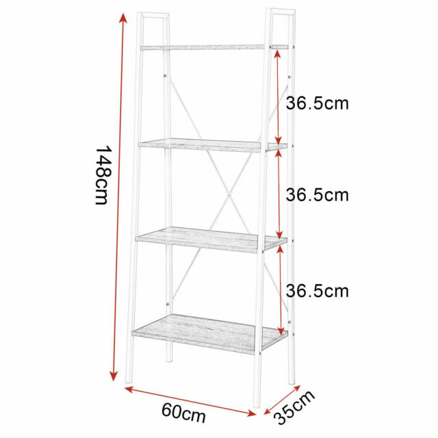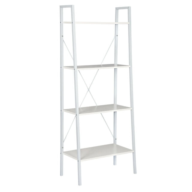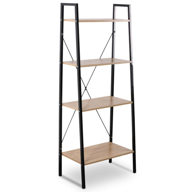 Scaffale a Scala Libreria Portaoggetti in Legno Acciaio con 4 Ripiani