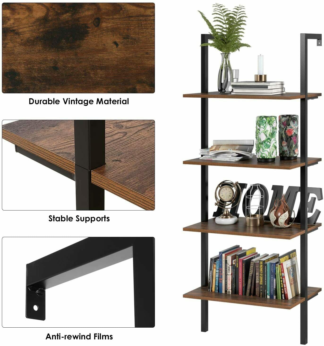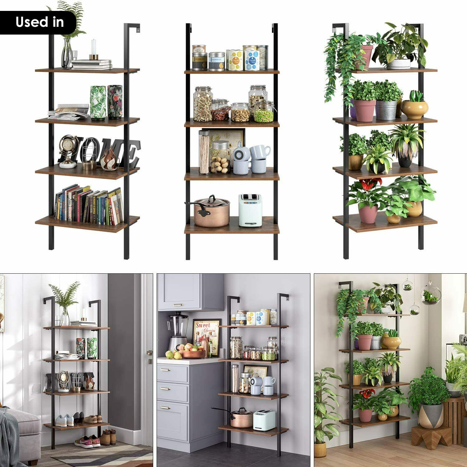 Scaffale a Scala Mensole da Parete Porta Piante libreria per Salotto industriale