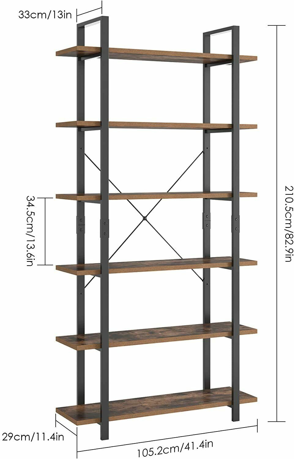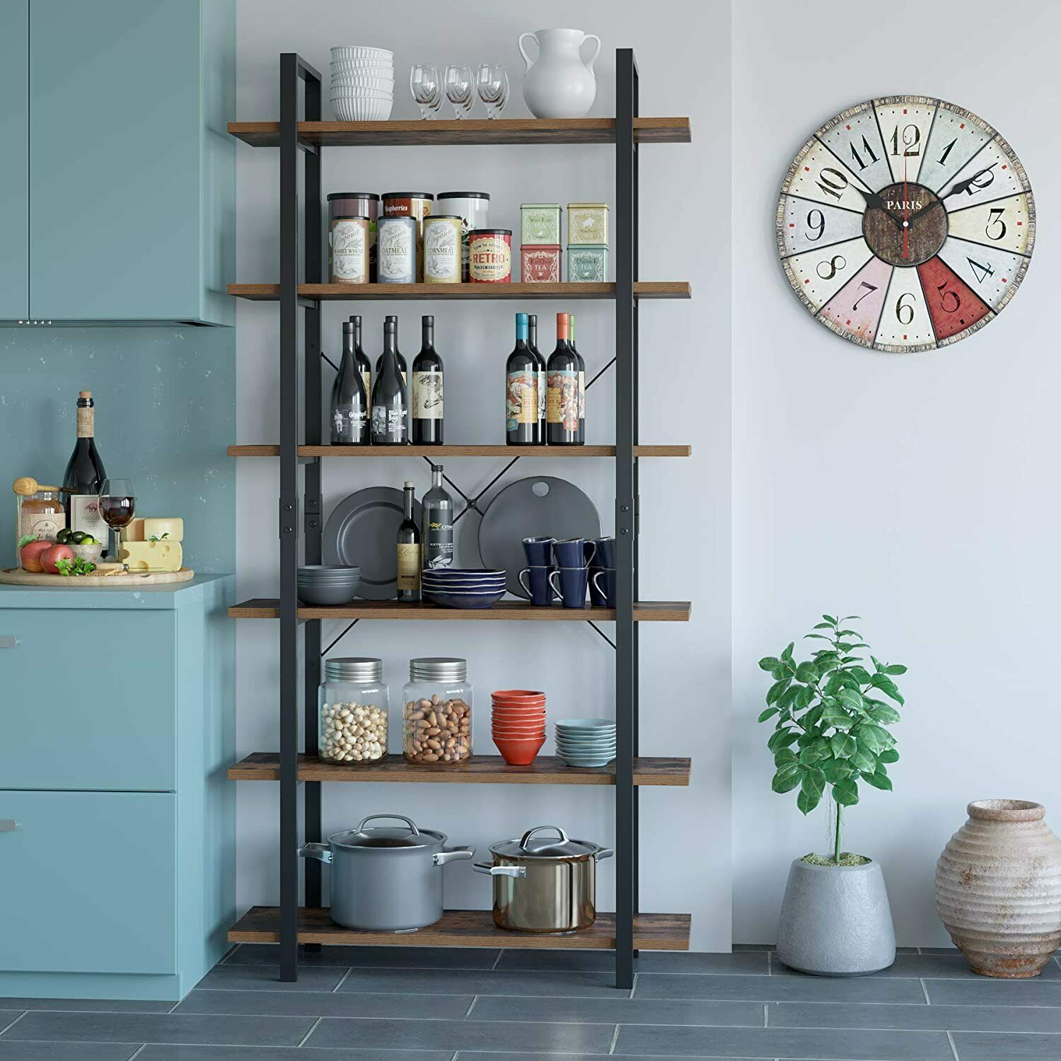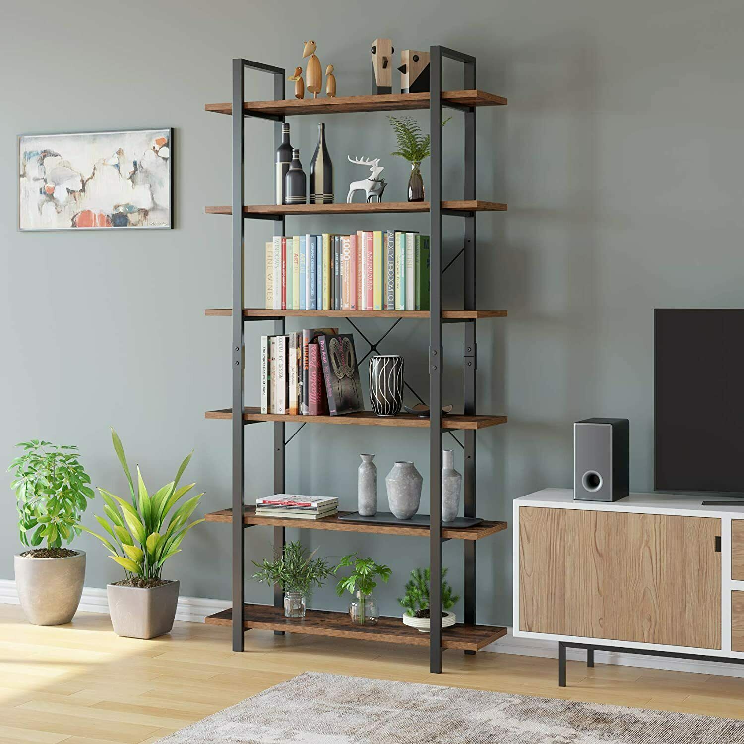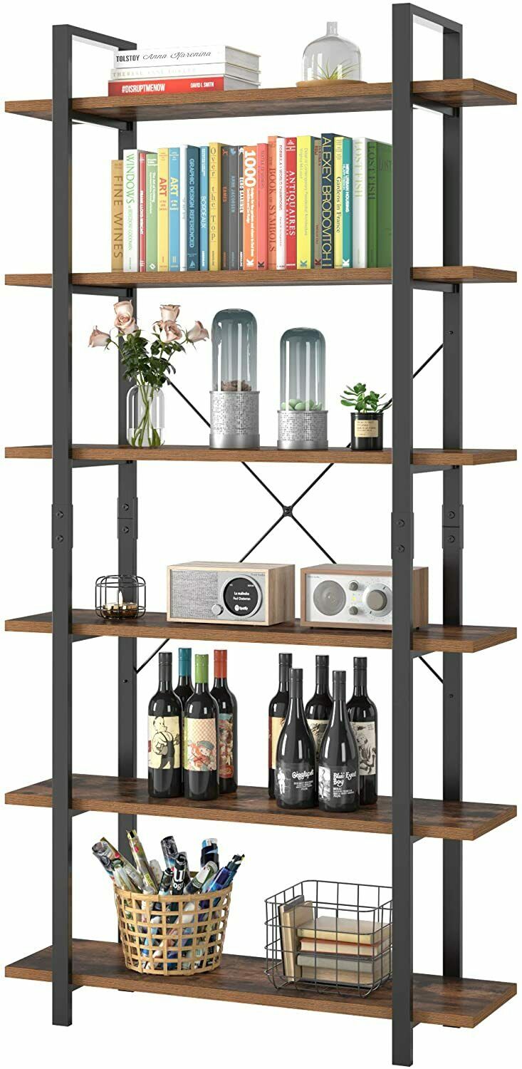 Scaffale Libreria con 6 Ripiani Industriale Scaffalatura Portaoggetti in legno