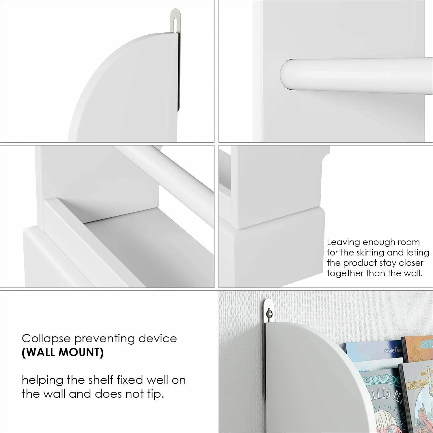 • Sicuro】-lo zoccolo del mobile rende la libreria più vicino al muro. C'è una barra in pino in ogni ripiano per prevenire la caduta dei libri.angoli arrotondati e un accessorio antiribaltamento per la sicurezza.