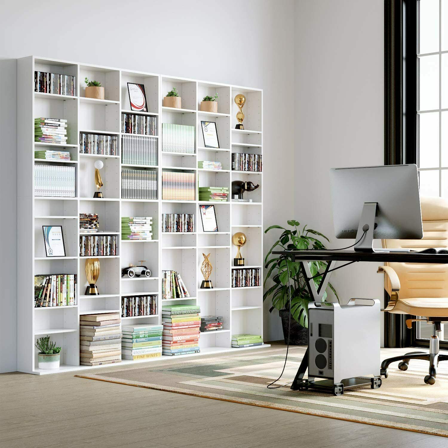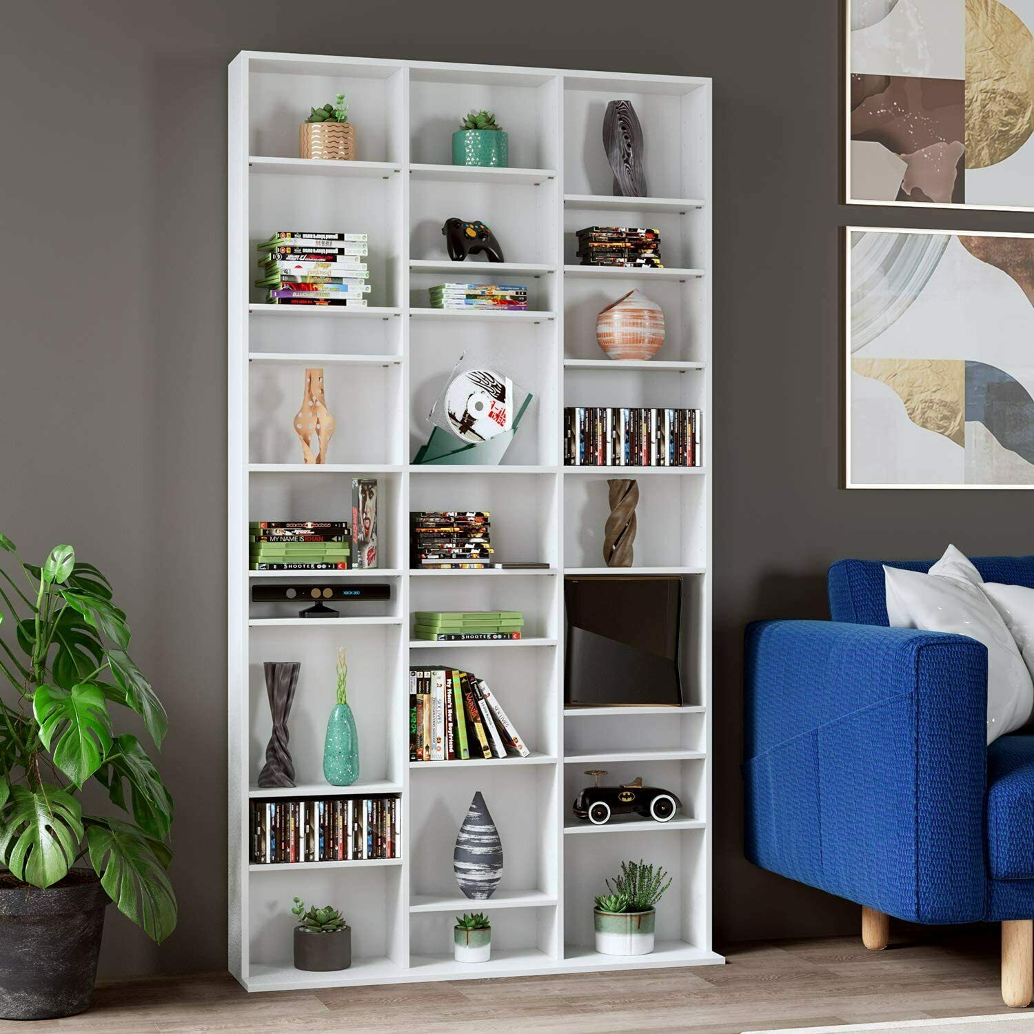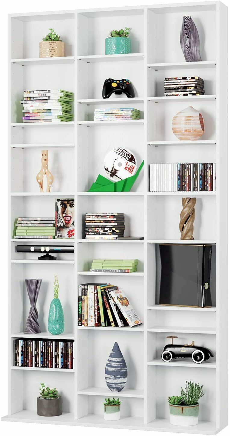 Scaffale per CD Armadio porta DVD bianco libreria a parete pensile Vetrina