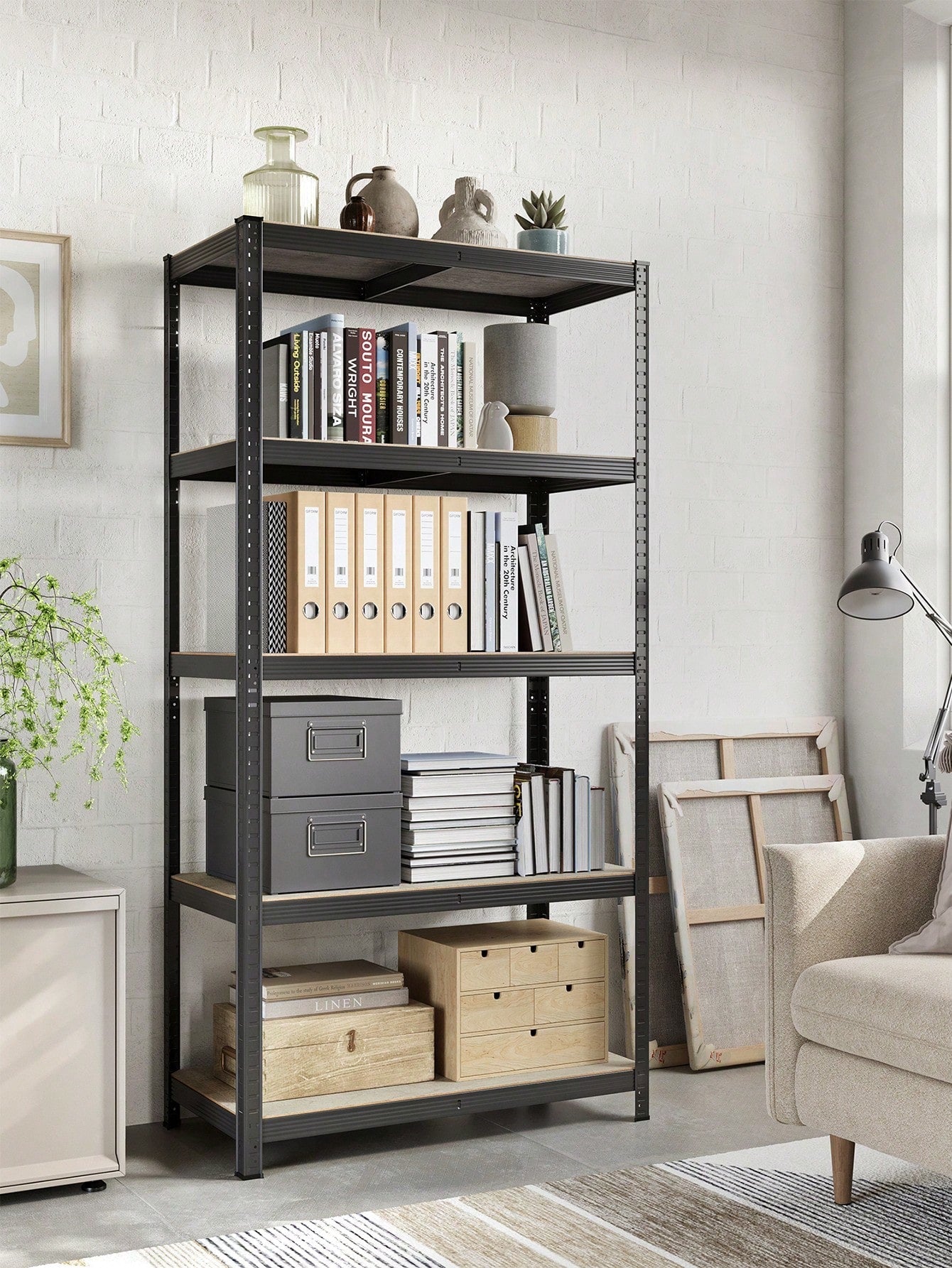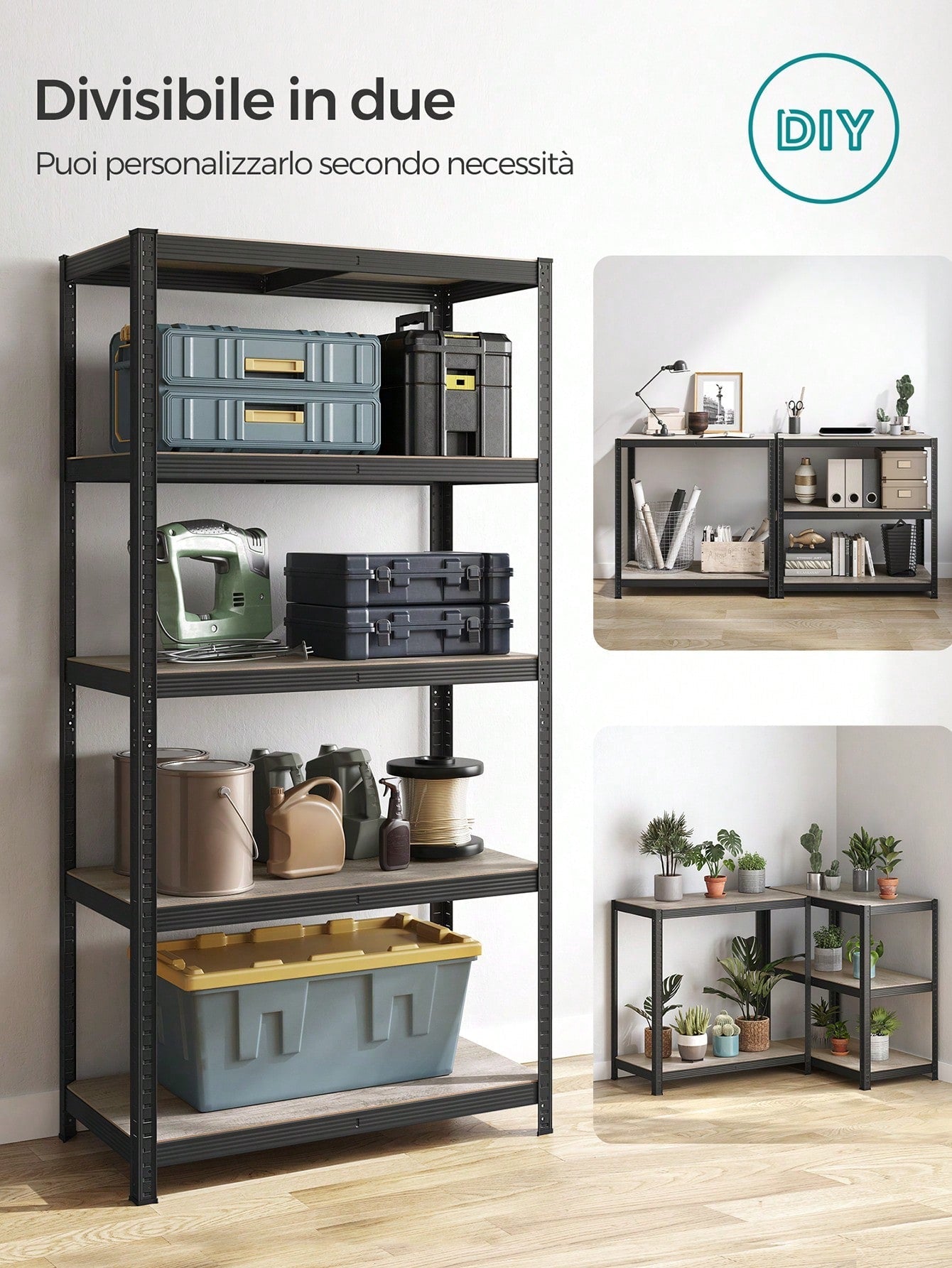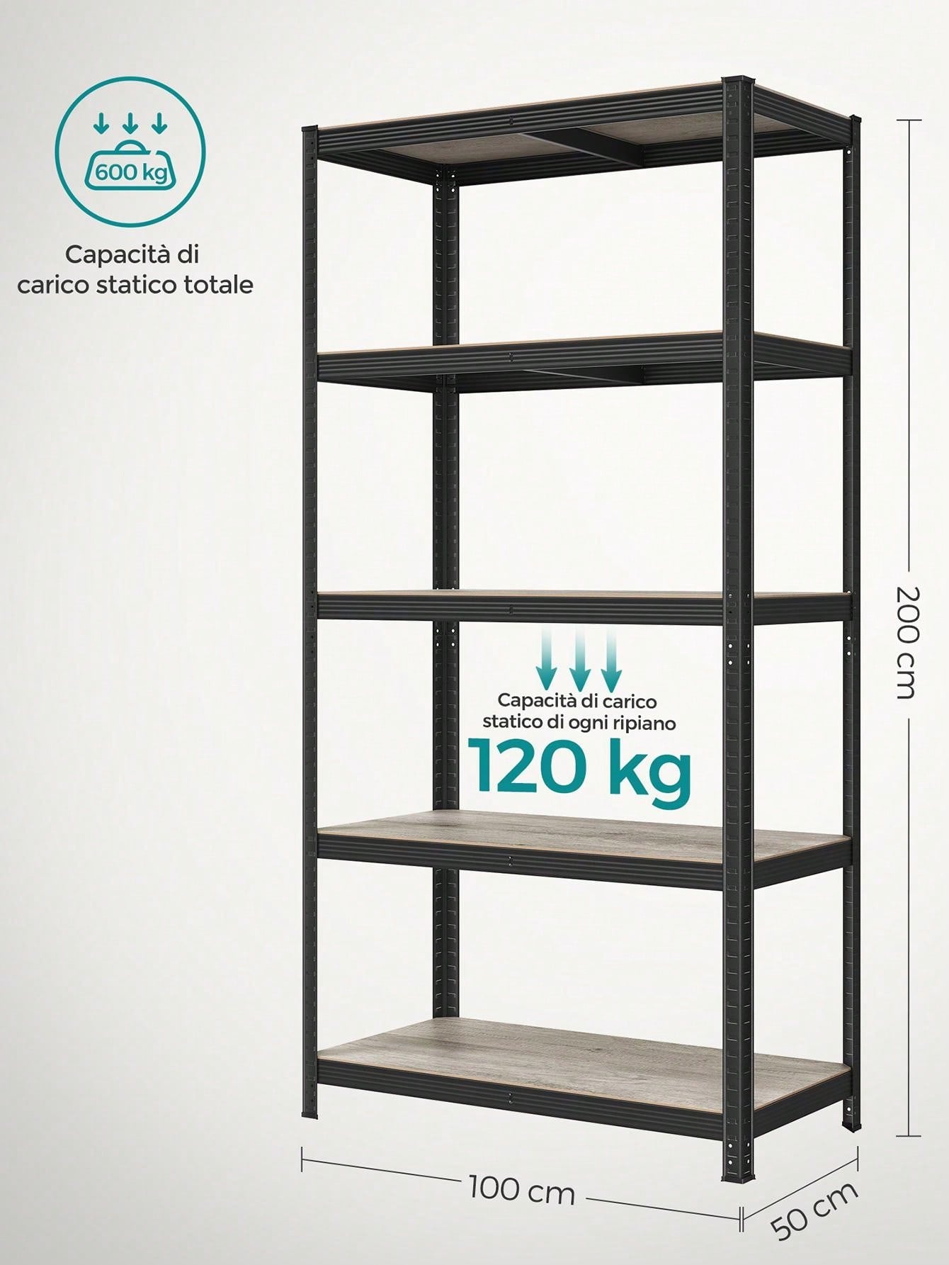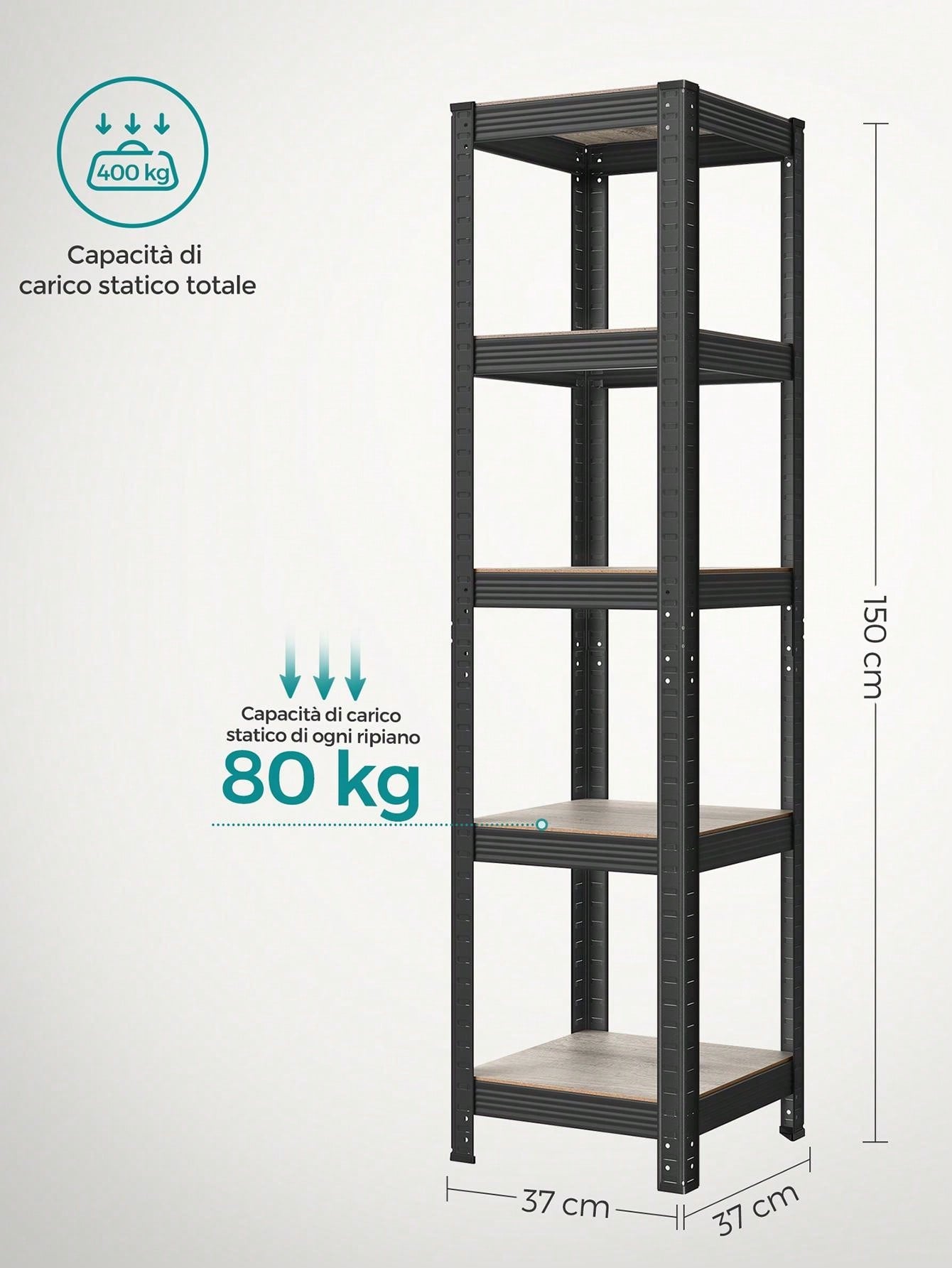 Scaffali a 5 Ripiani, Portaoggetti Organizzatore 30 x 75 x 150 cm/37 x 37 x 150 cm/50 x 100 x 200 cm