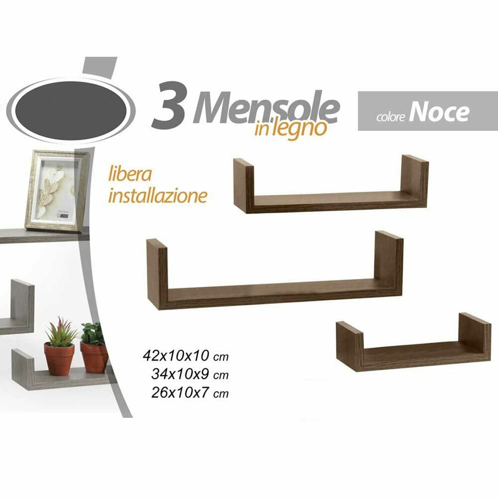 Set 3 Mensole da Parete Moderne Design con Bordi Mensola Scaffale Legno Noce