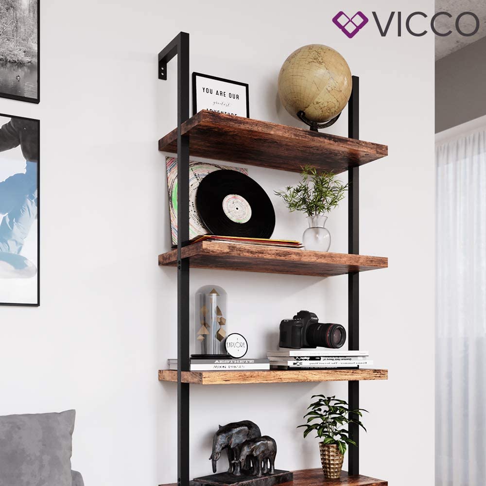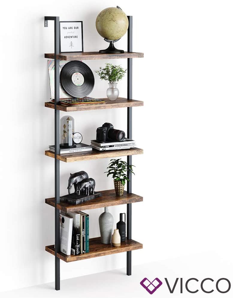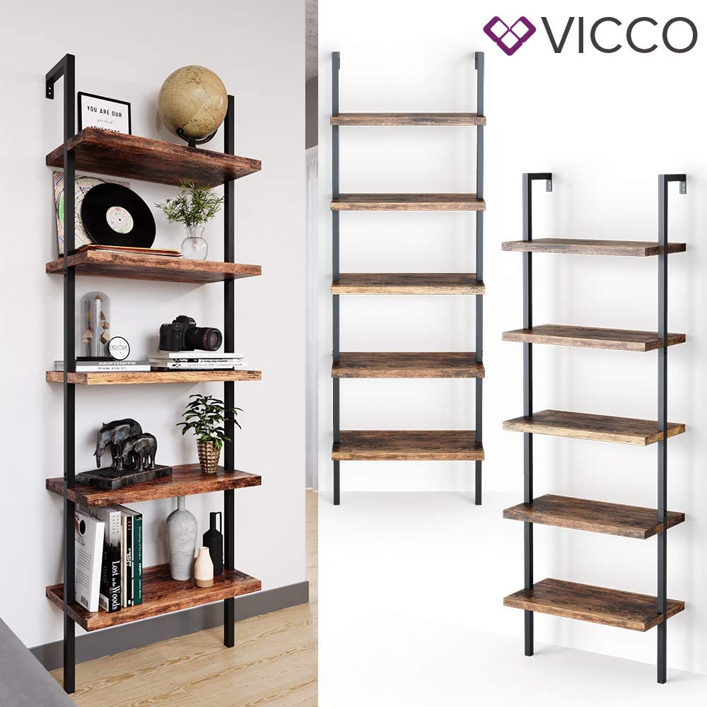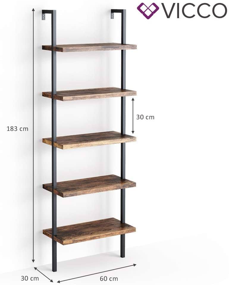 Vicco Loft Libreria AVA Scaffale da Pavimento Scaffale da Parete 5 mensole Scaffale a Scala Metallo