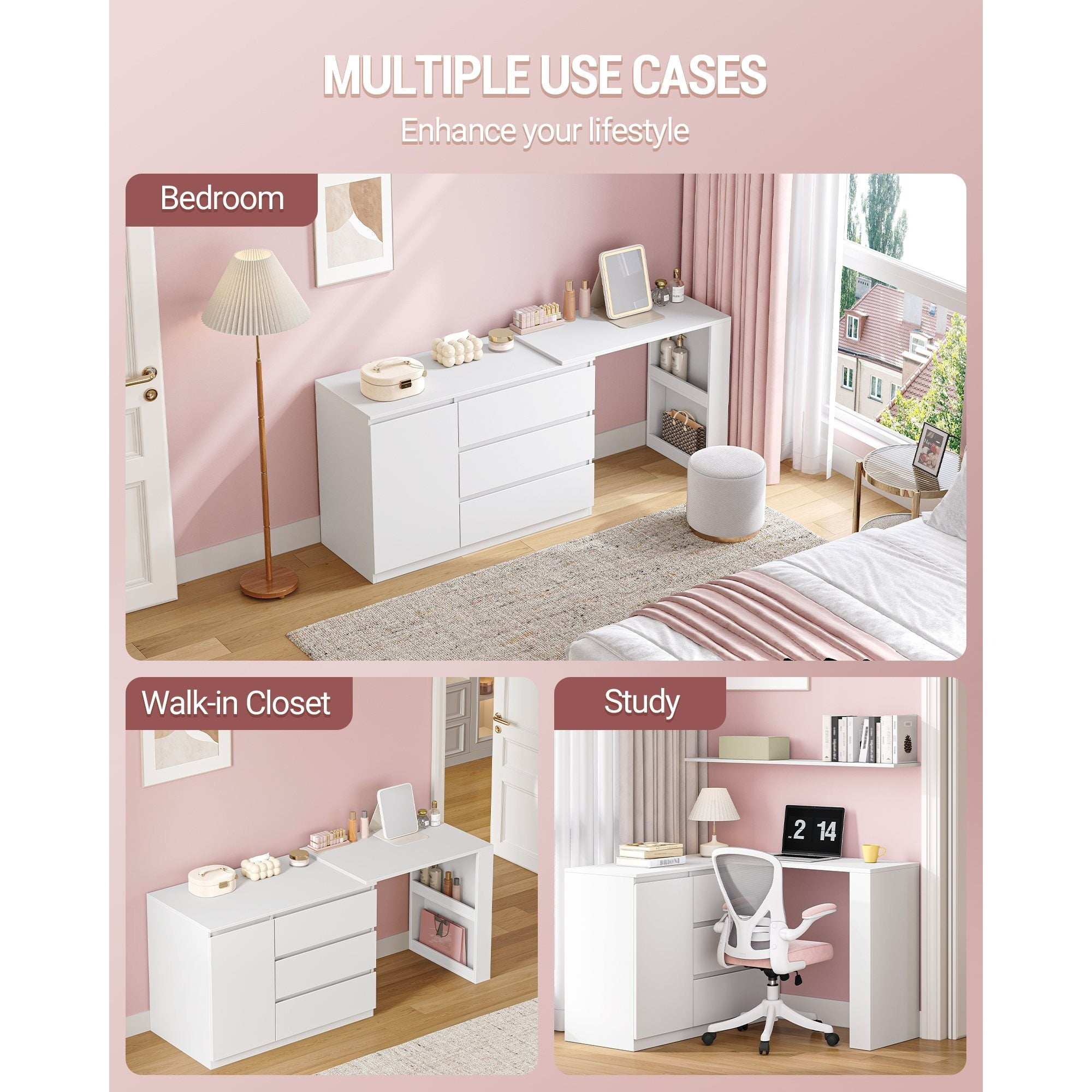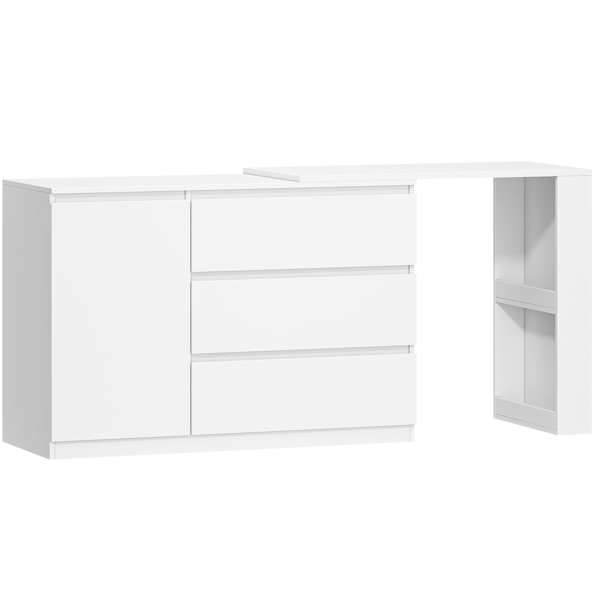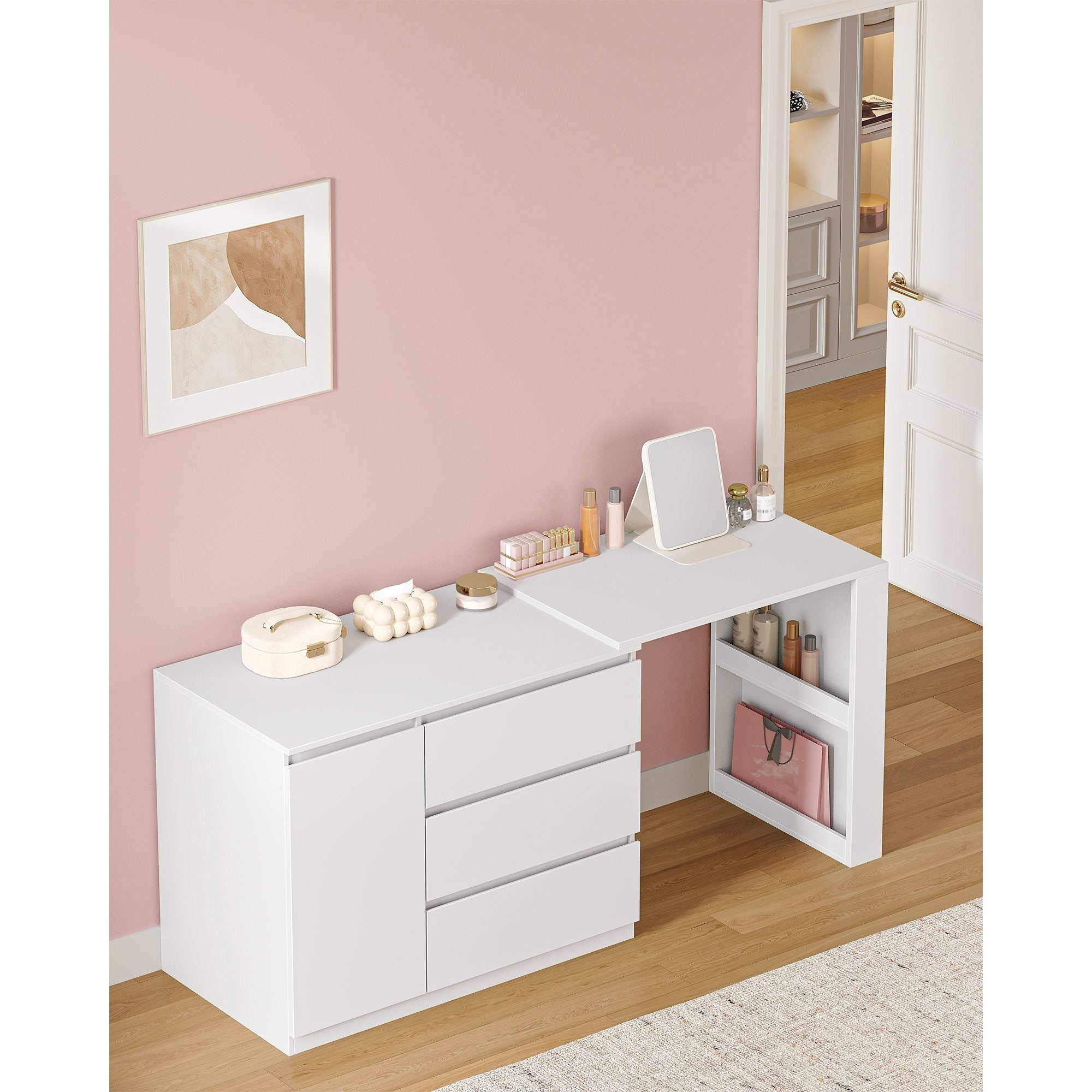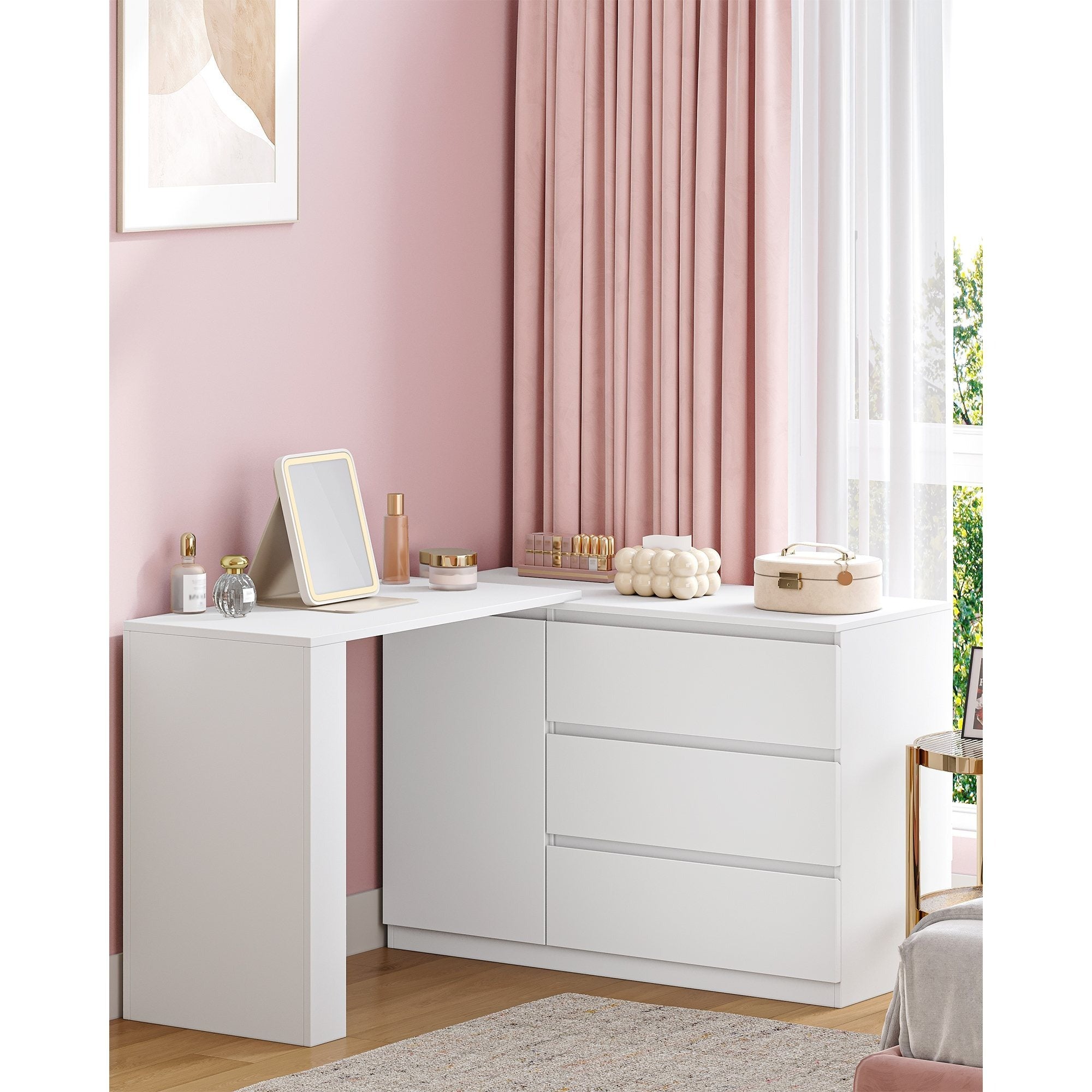 Toeletta Trucco con Cassetti Toeletta Angolare a L 1 Mobiletto Portaoggetti e 2 Ripiani Aperti