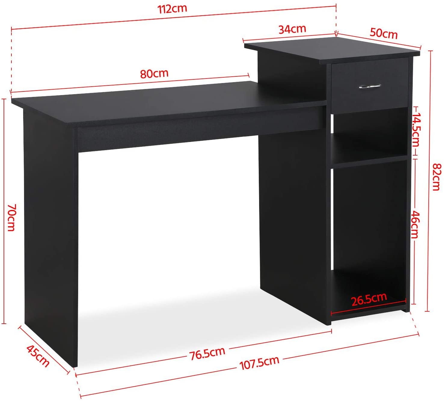 Scrivania Computer con Cassetto Moderna da Cameretta Ufficio Studio Scrivania Porta pc Nera Specifiche tecniche: Materiale: Pannelli MDF di grado P2 di 1,5 cm Spessore del pannello: 1,5 cm, Dimensioni complessivi: 112 x 50 x 82 cm Dimensioni del piano: 80 x 50 cm, Dimensioni del piano rialzato: 50...