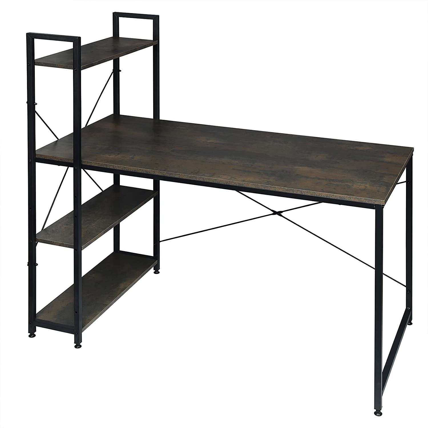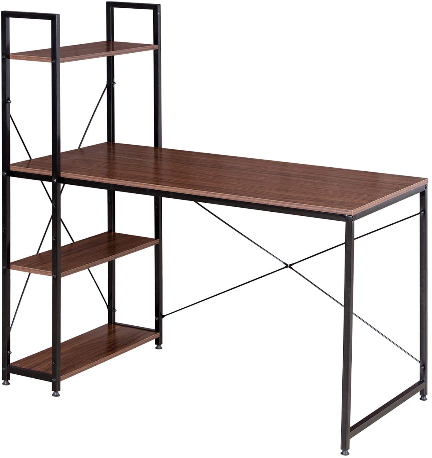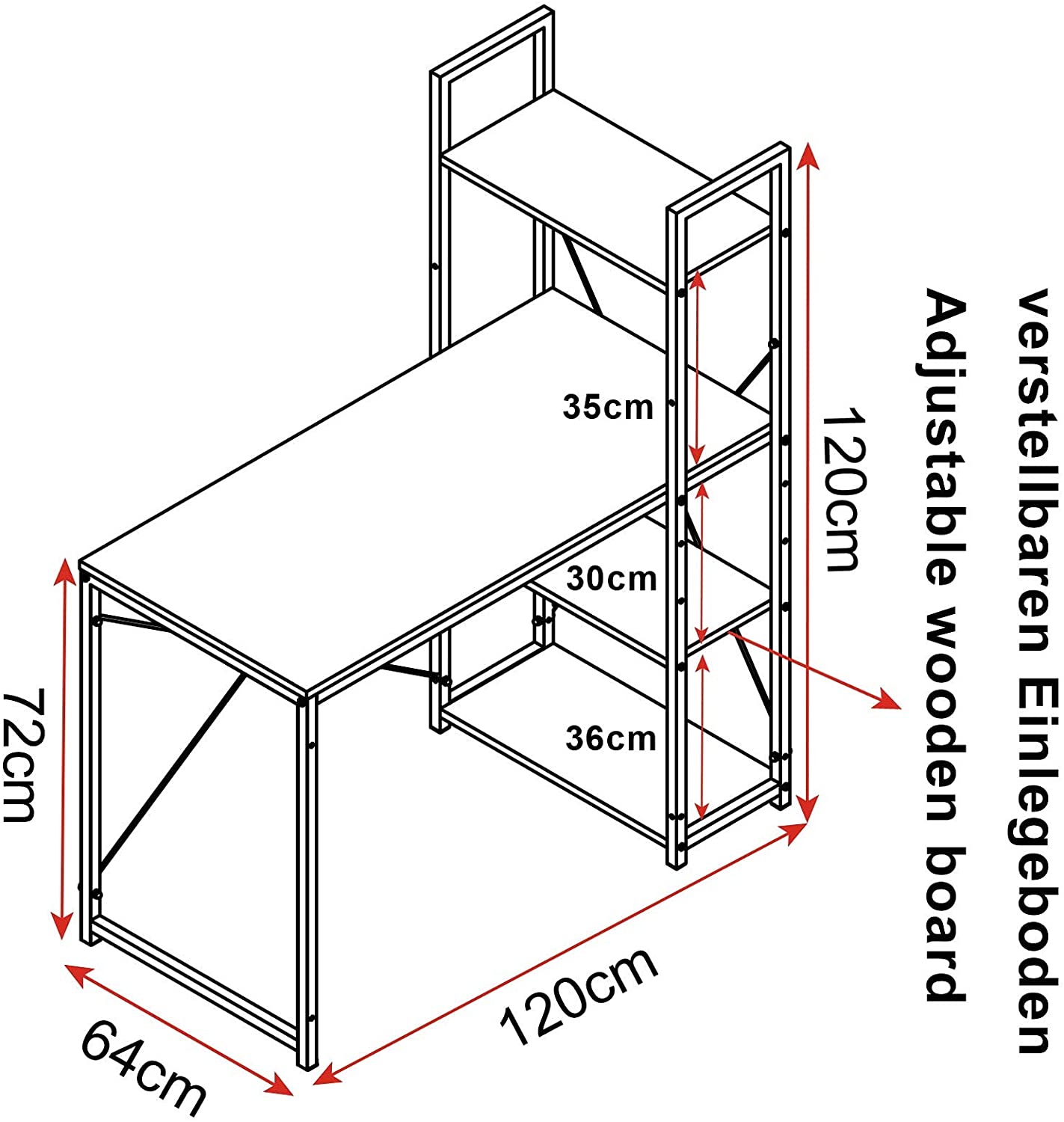 Scrivania con Libreria a 4 Ripiani Tavolo PC Lavoro Moderno in Acciaio Legno