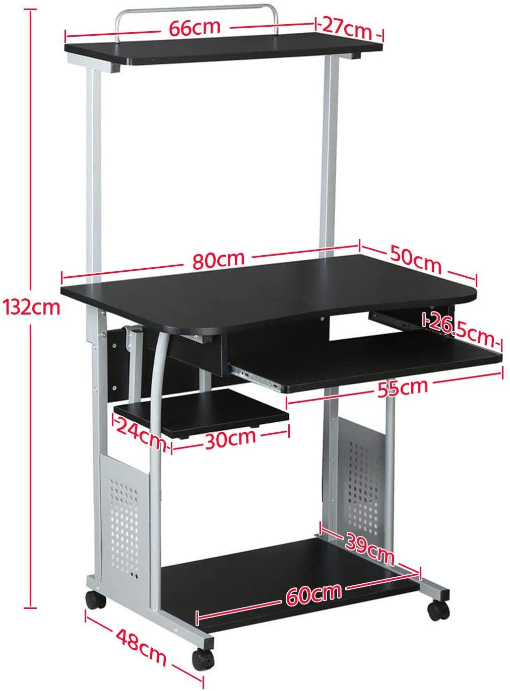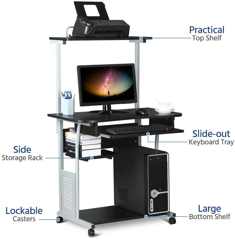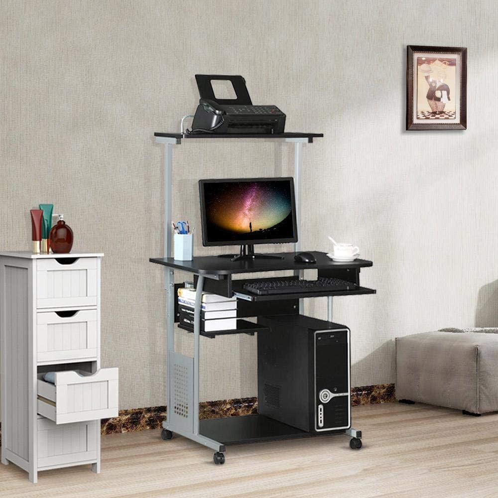 Scrivania per Computer da Ufficio Tavolo Porte PC con Stampante Ruote Tavolo