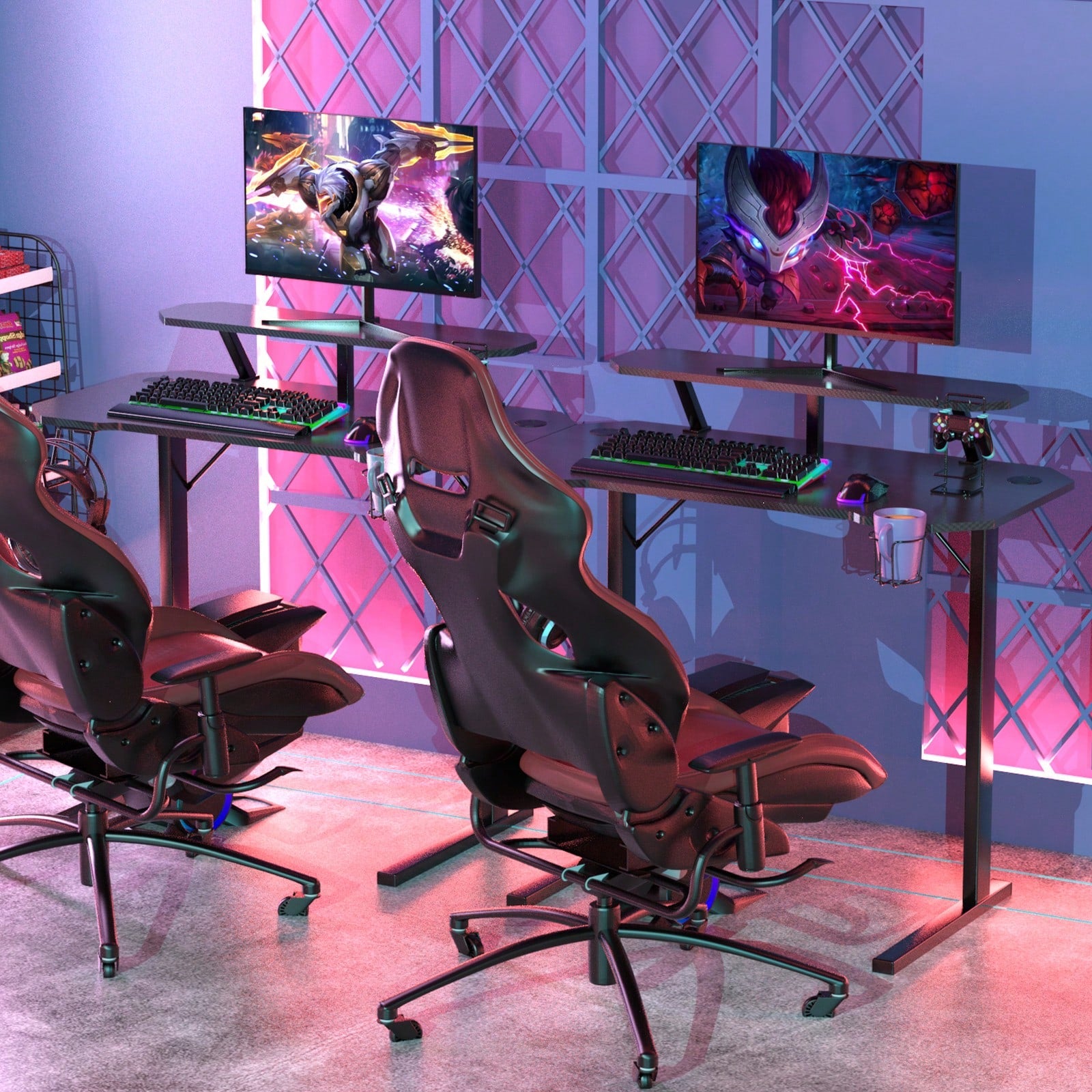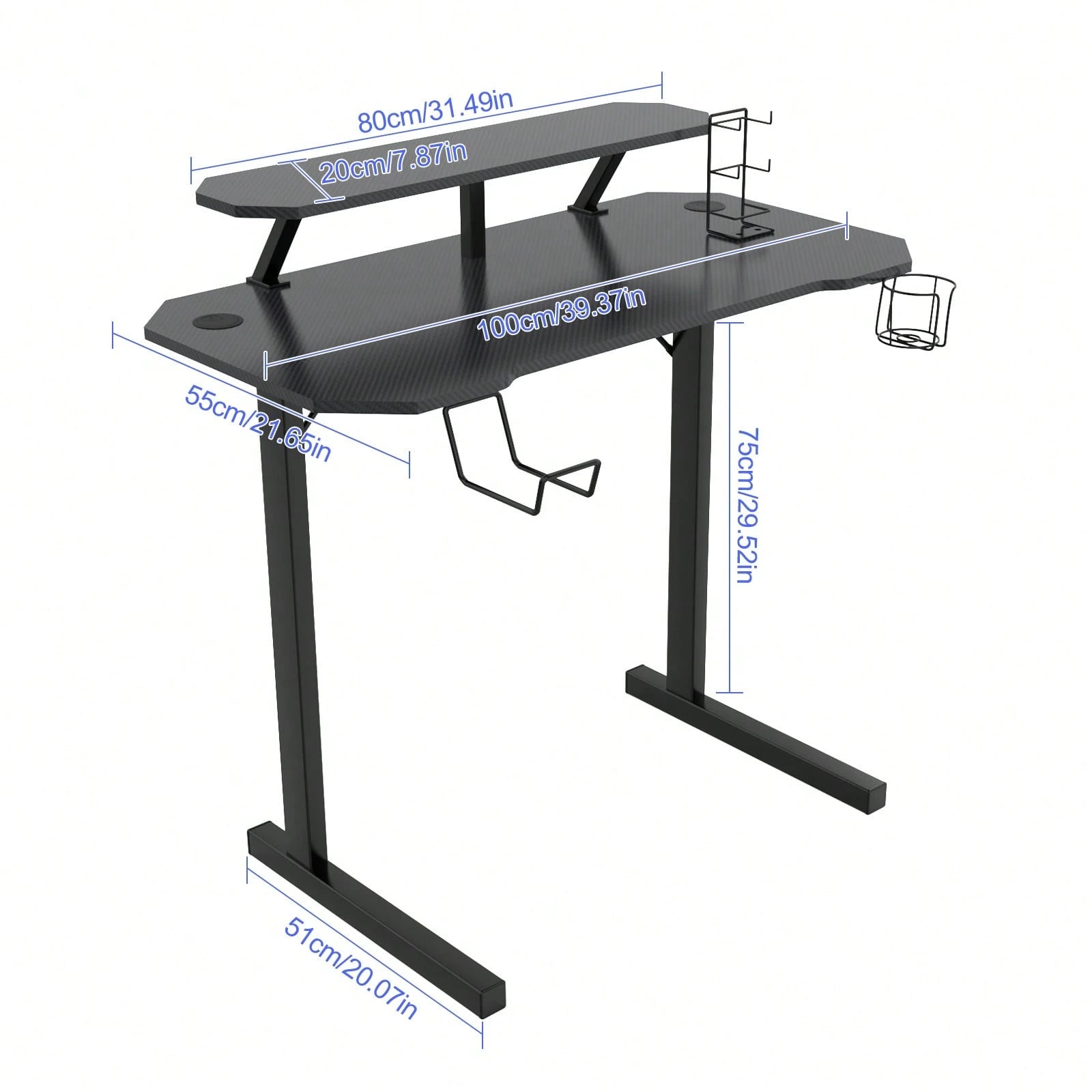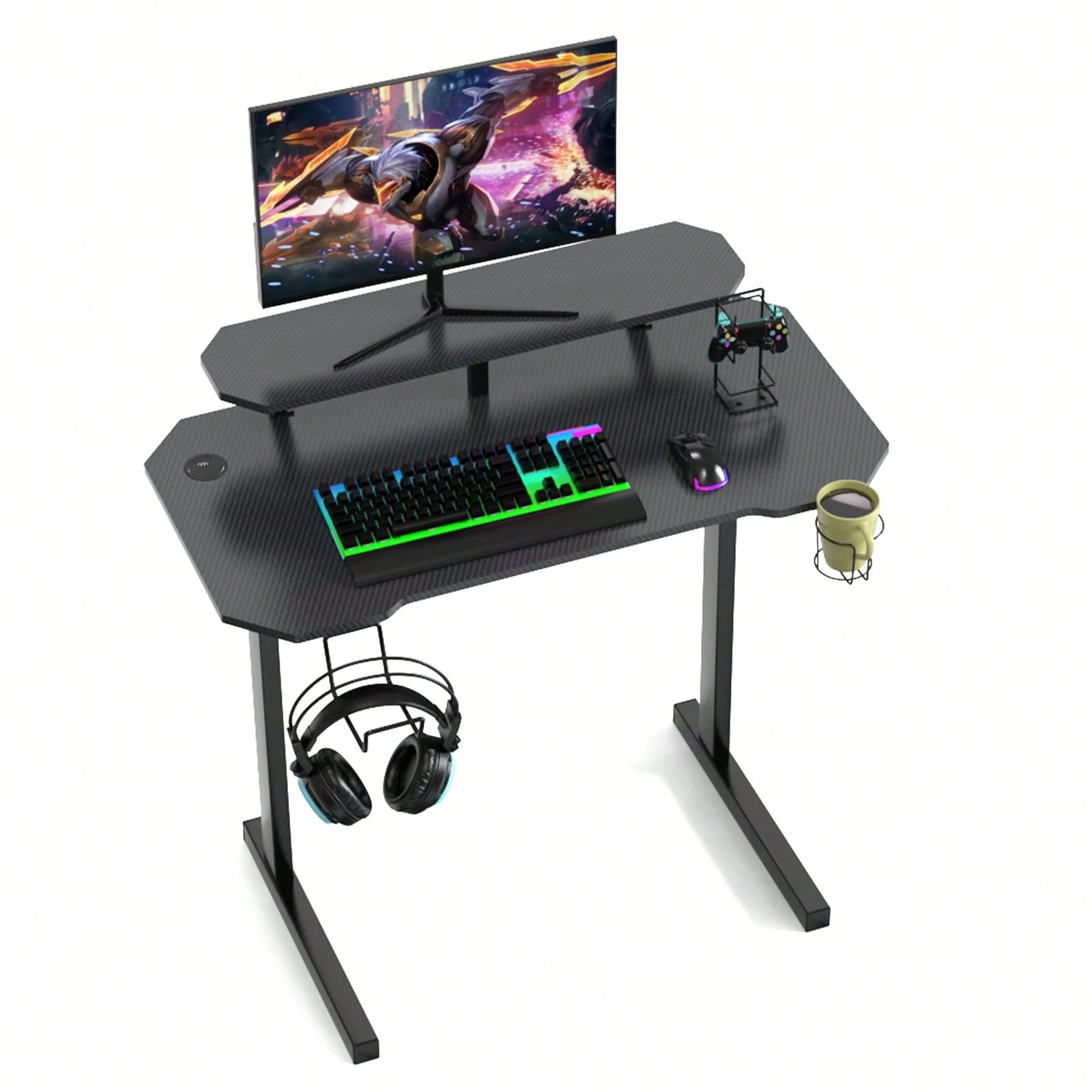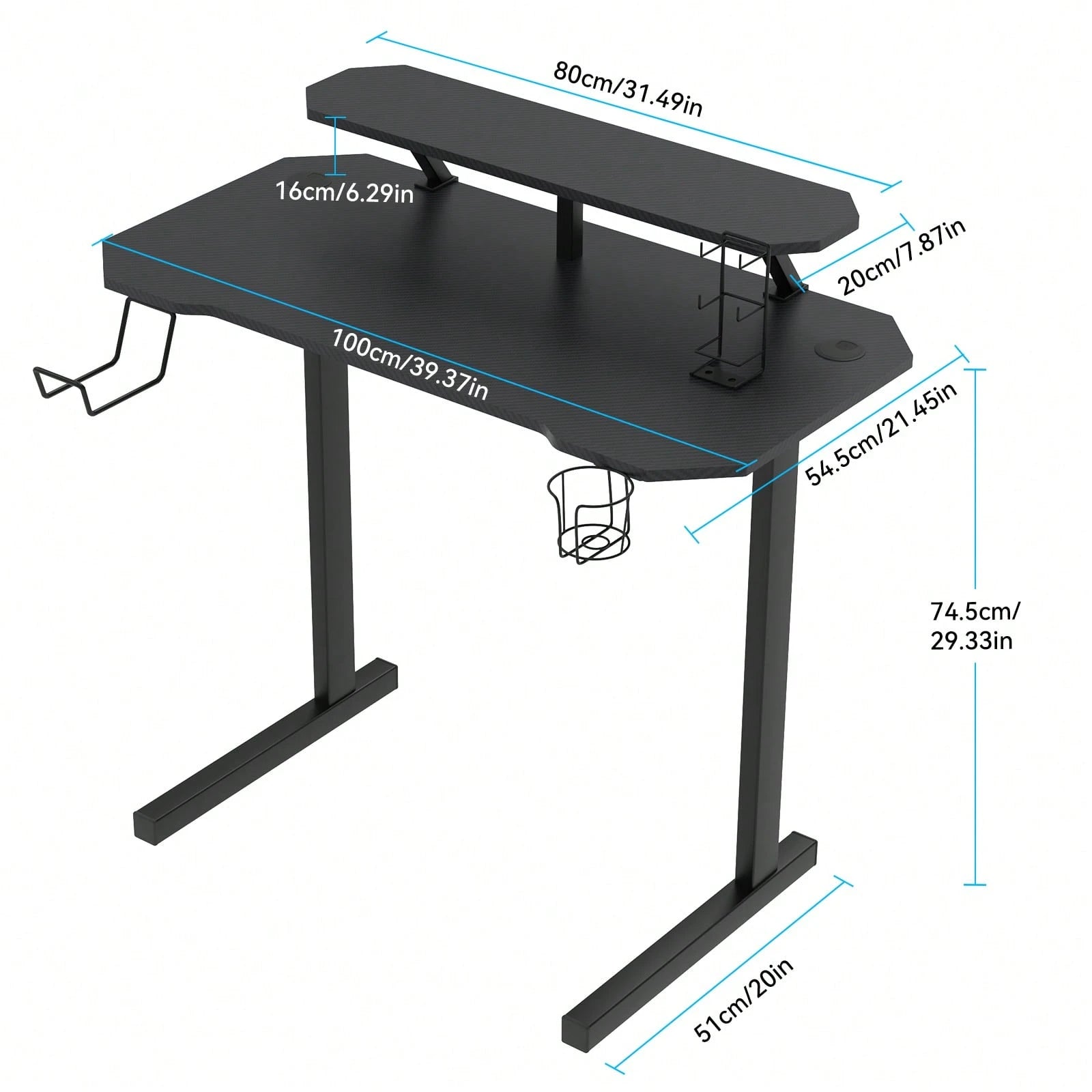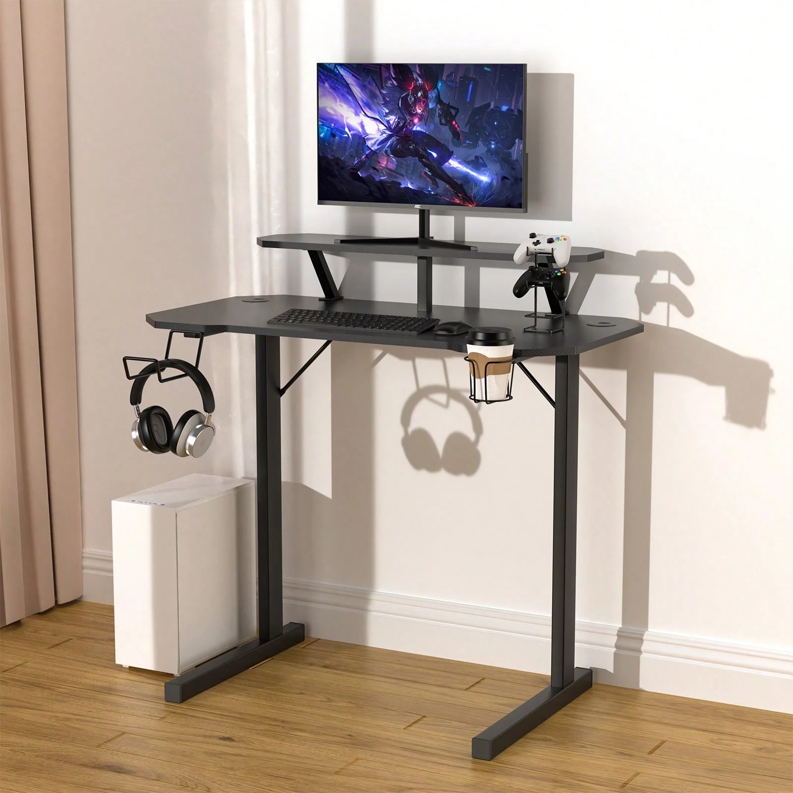 Il pratico portabicchieri ti tiene idratato senza rischi di disastri sulla scrivania, mentre i ganci strategicamente posizionati offrono spazio extra per cuffie, borse o quello che vuoi appendere.