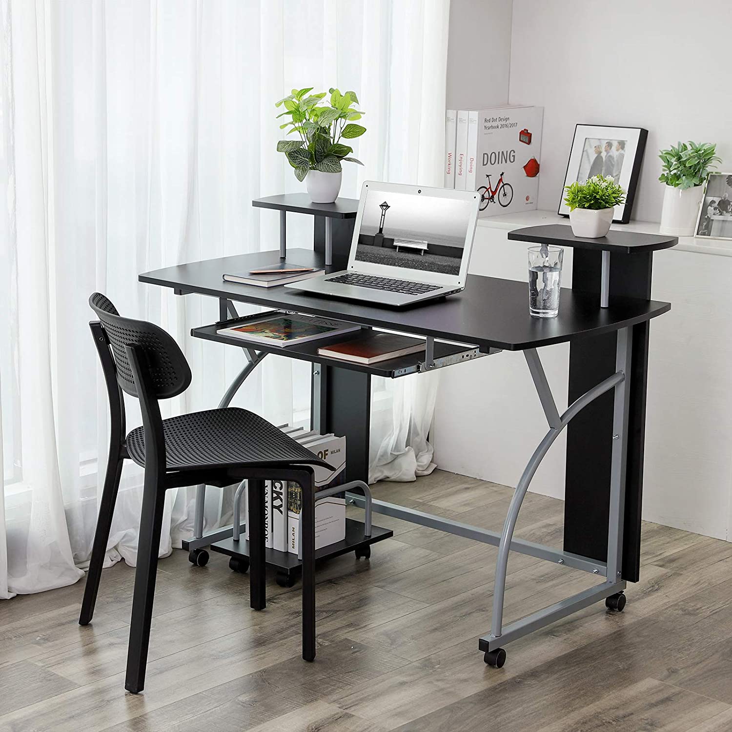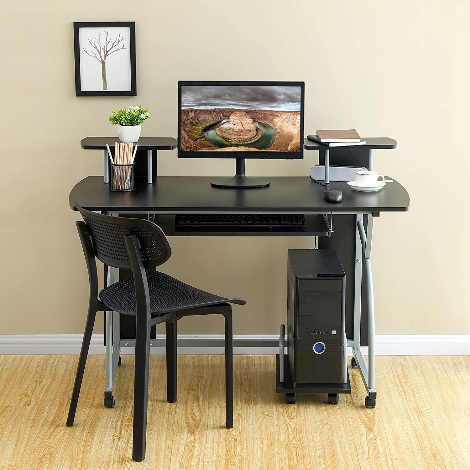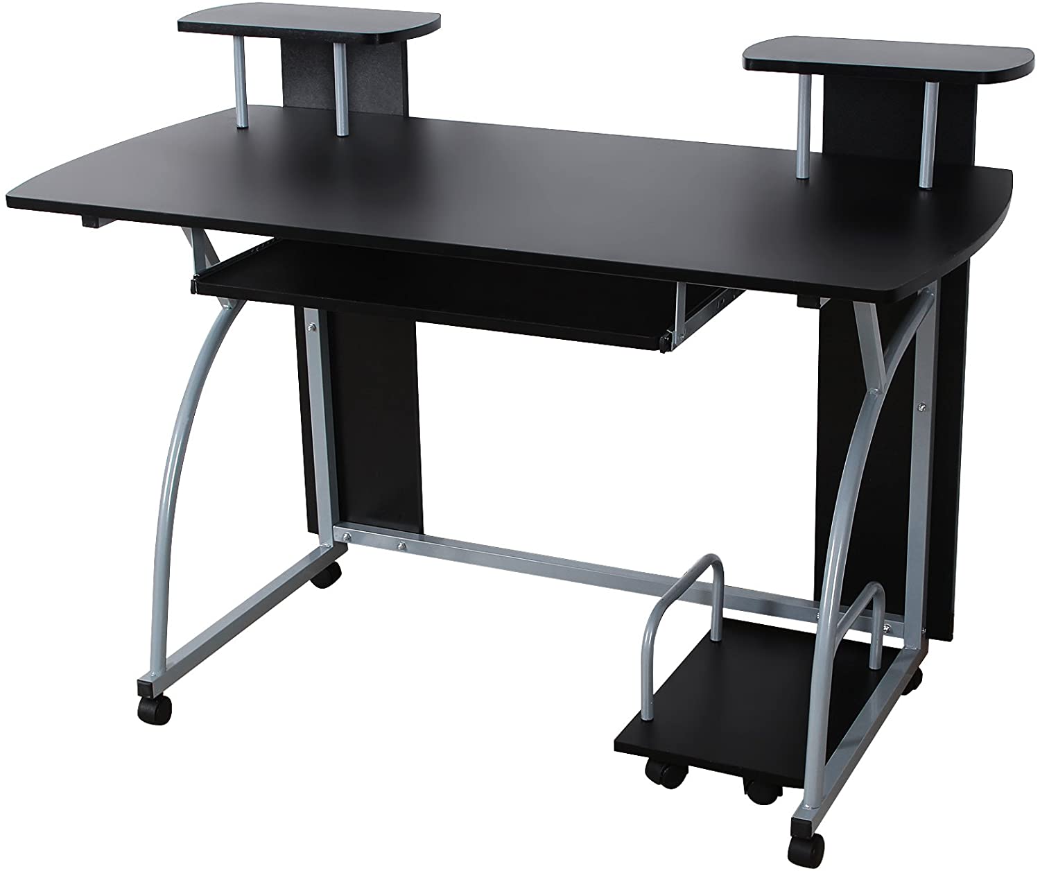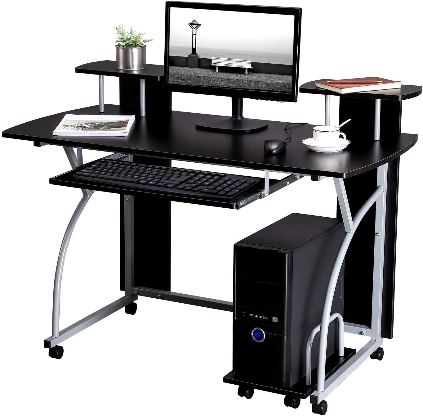 Scrivania per Computer Scrivania Ufficio Porta PC Tavolo per Computer con Ripiani Tastiera