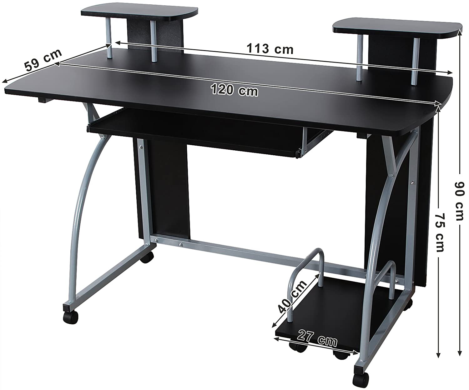 Scrivania multifunzionale progettata per ottimizzare lo spazio di lavoro. Con dimensioni di 120 × 59 × 90 cm, offre ampia superficie di lavoro in colore nero elegante.