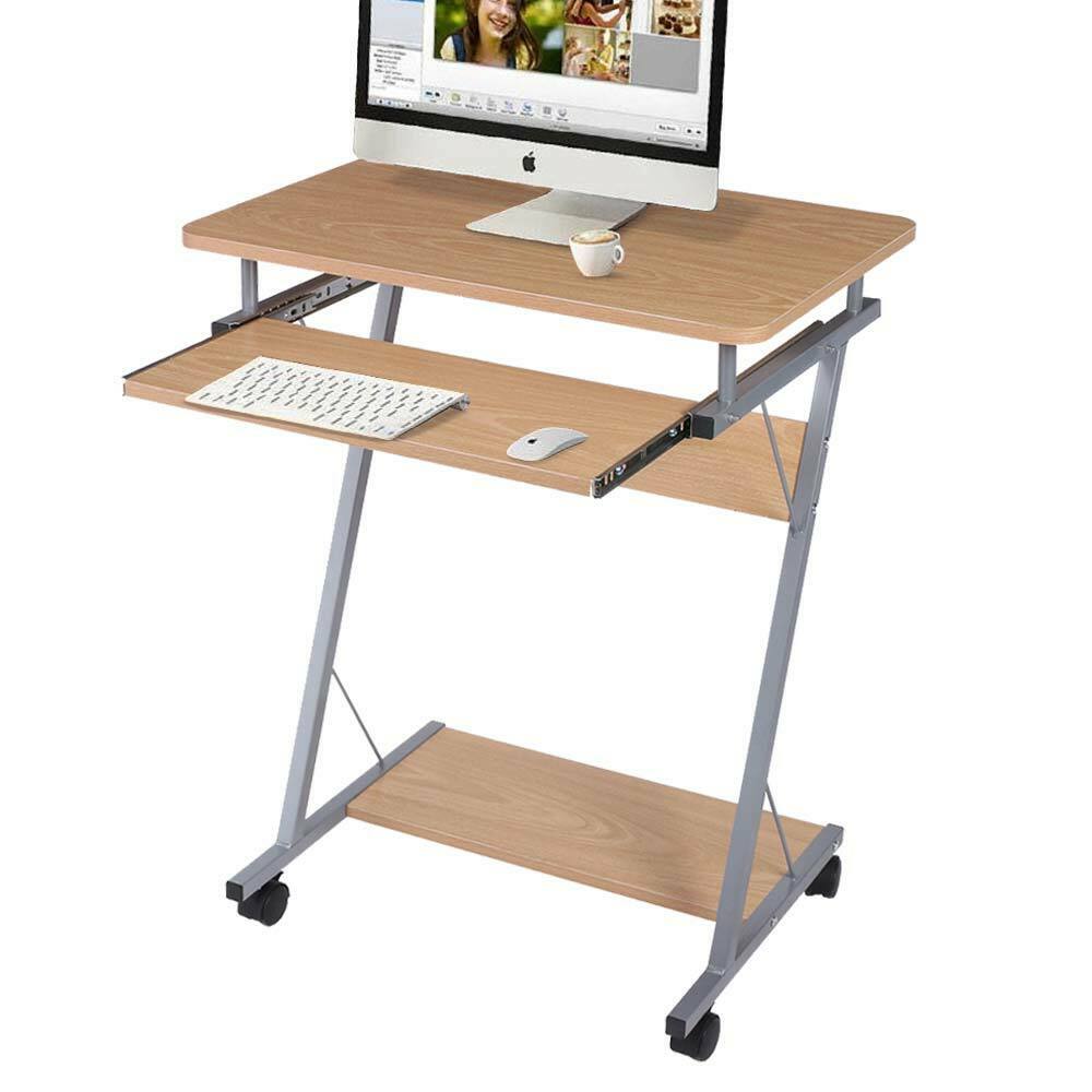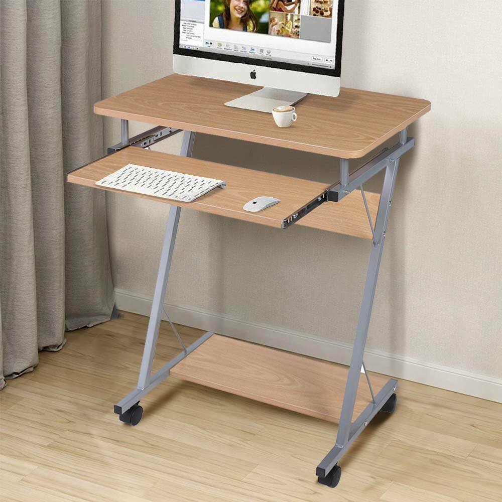 1 x Scrivania Tavolo Porta Pc Computer con Porta Tastiera in Metallo e Legno Quercia