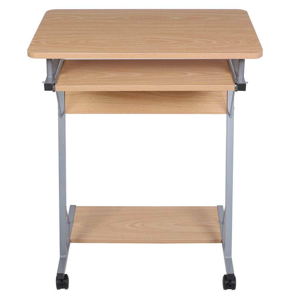 Scrivania Tavolo Porta Pc Computer con Porta Tastiera in Metallo e Legno Quercia
