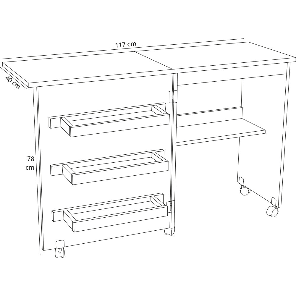 Il tavolo ribaltabile non soltanto è destinato agli amanti del cucito, ma può essere utilizzato anche come pratica scrivania o ripiano d'appoggio, grazie alla sua enorme versatilità e mobilità facilitata con le ruote! Il tavolo è dotato di un piano grande, che è suddiviso in due parti, tre mensole per...