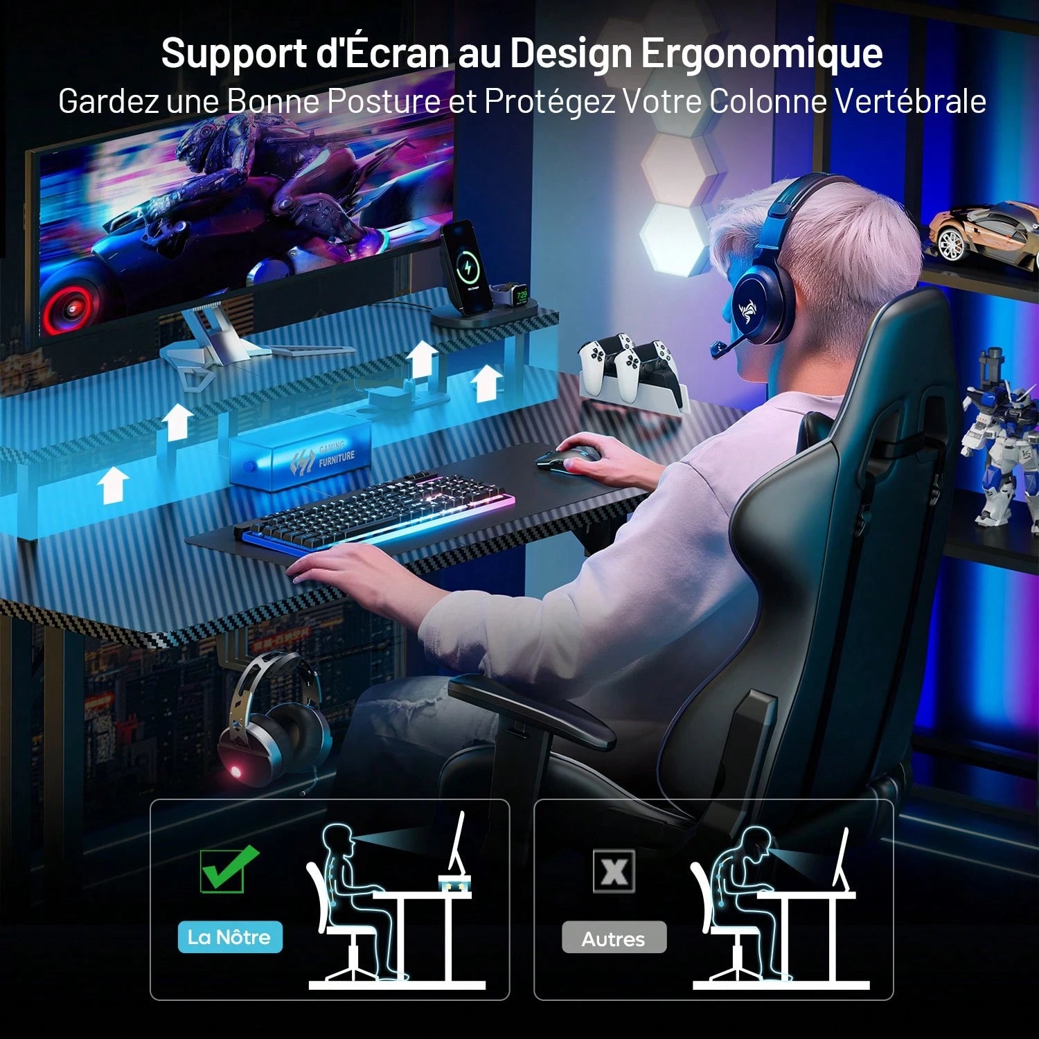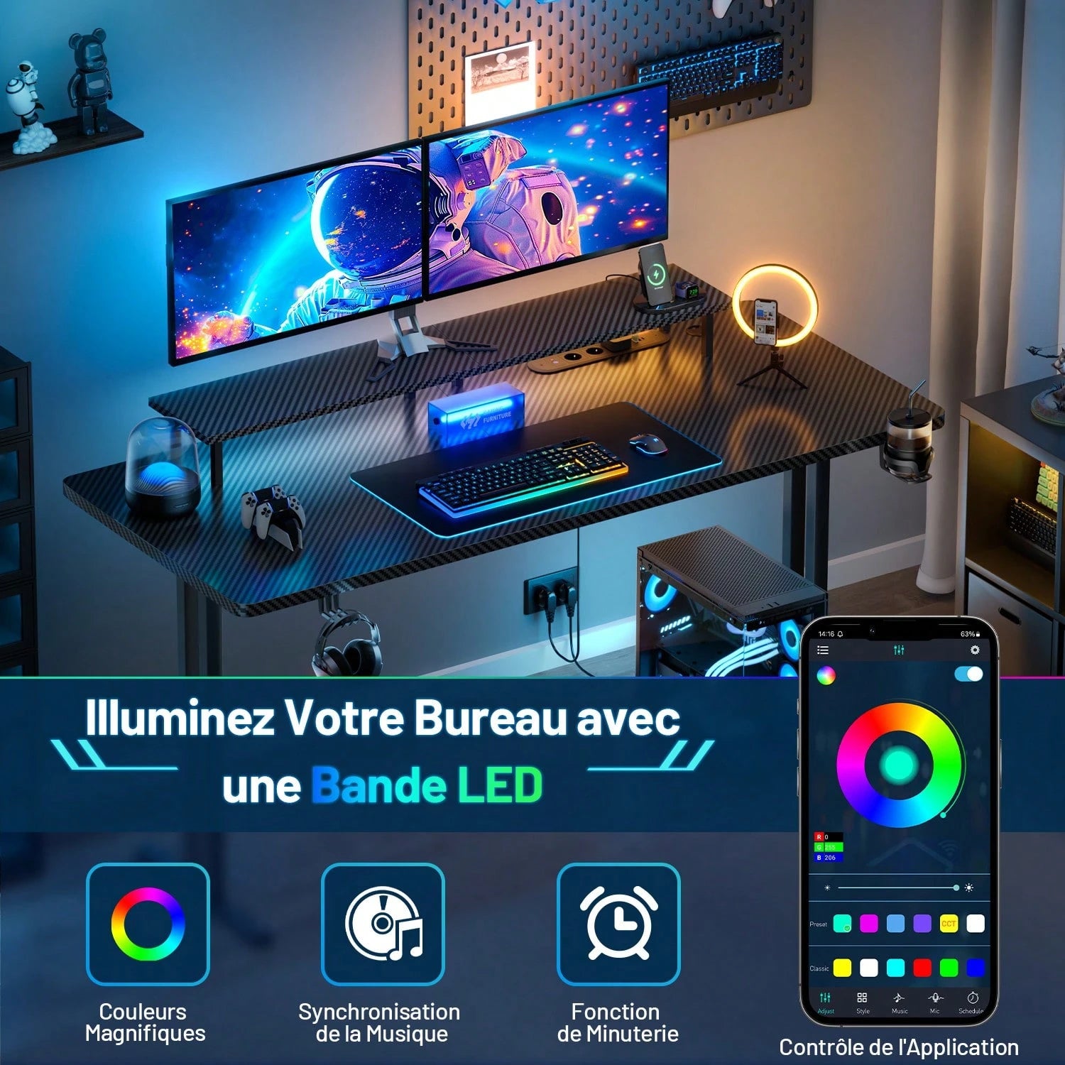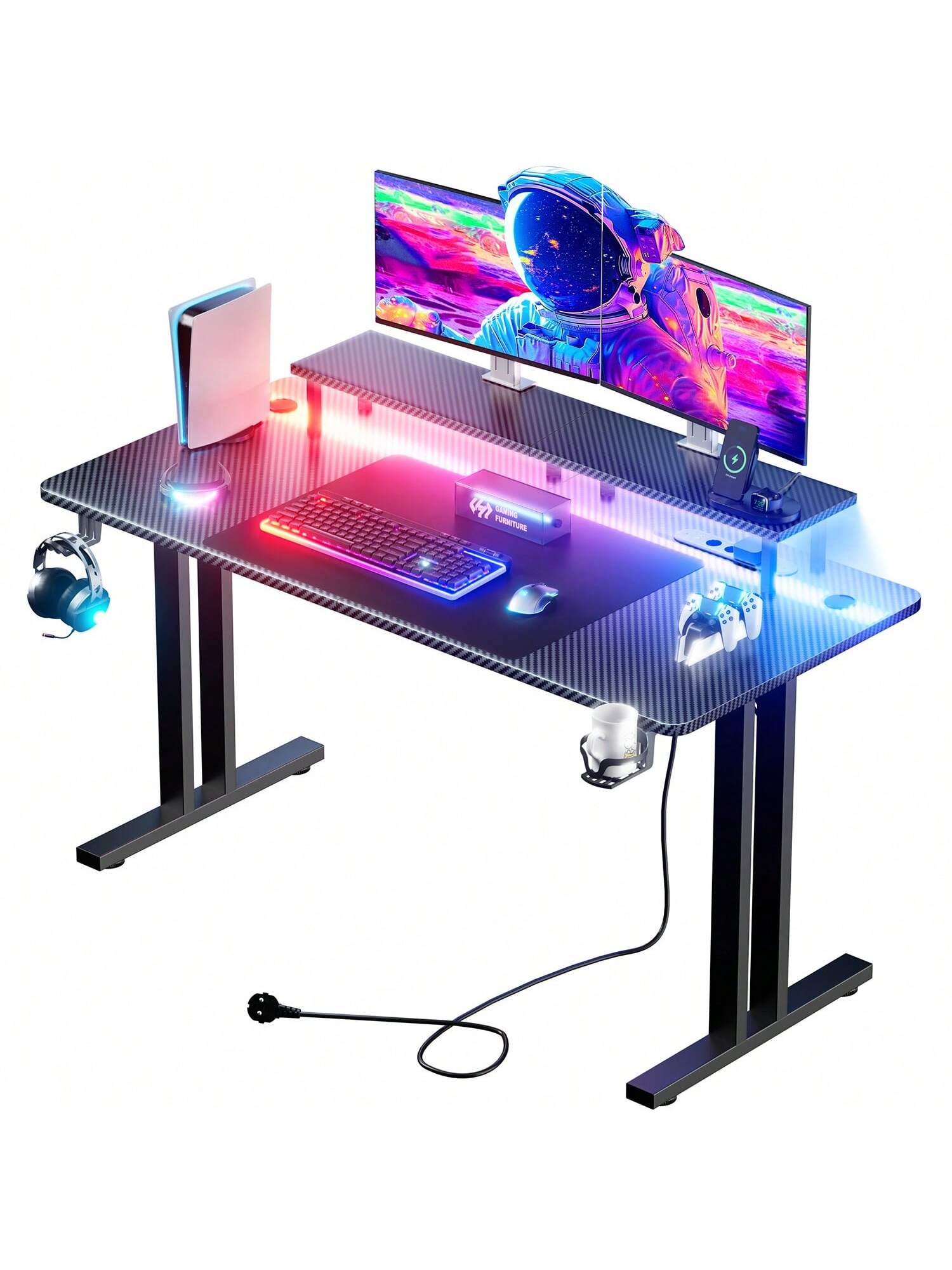 Tavolo da gioco con LED, scrivania da gioco con 3 prese di corrente e 2 porte USB
