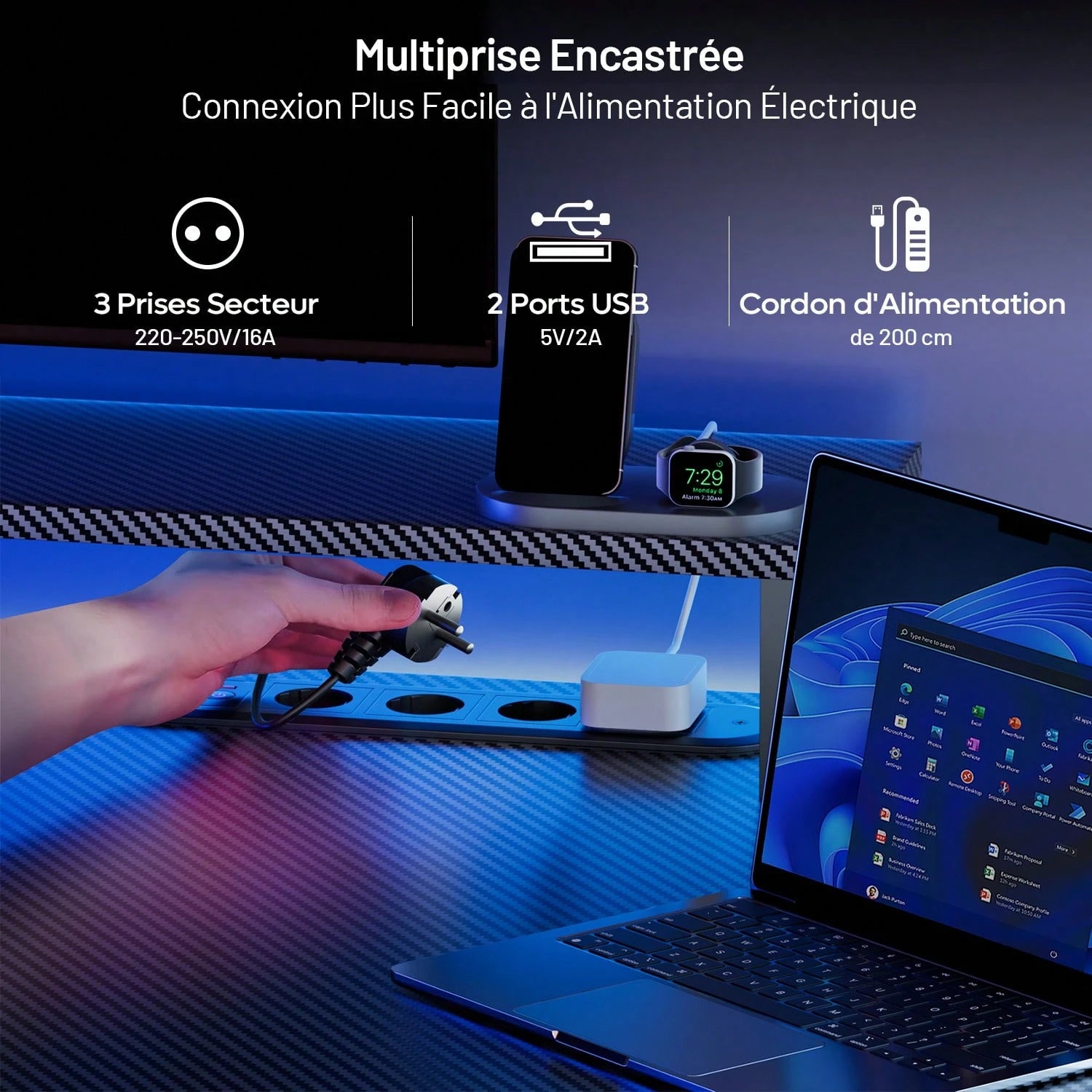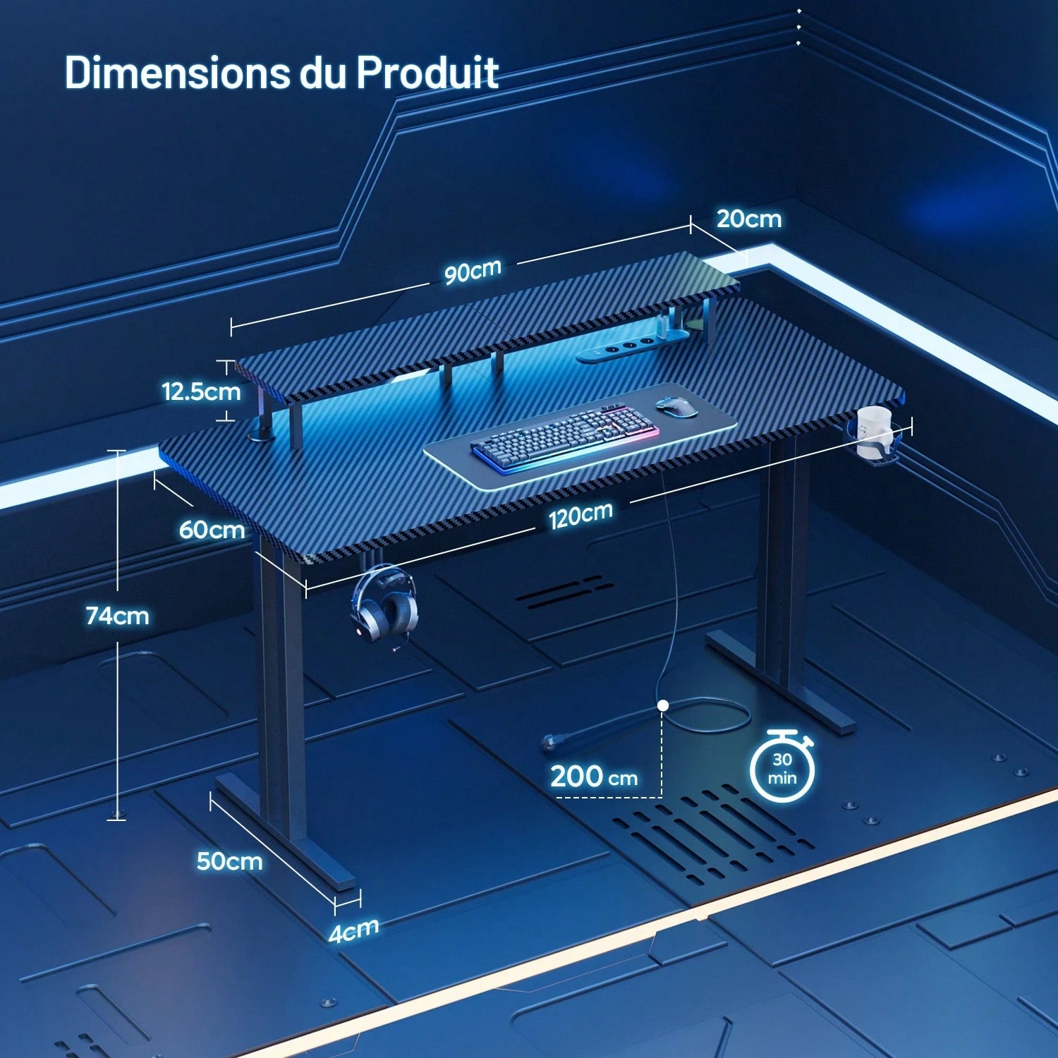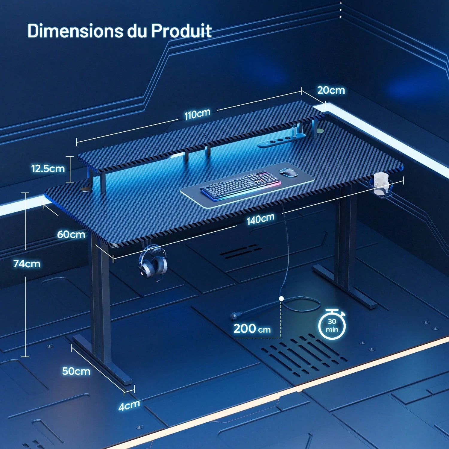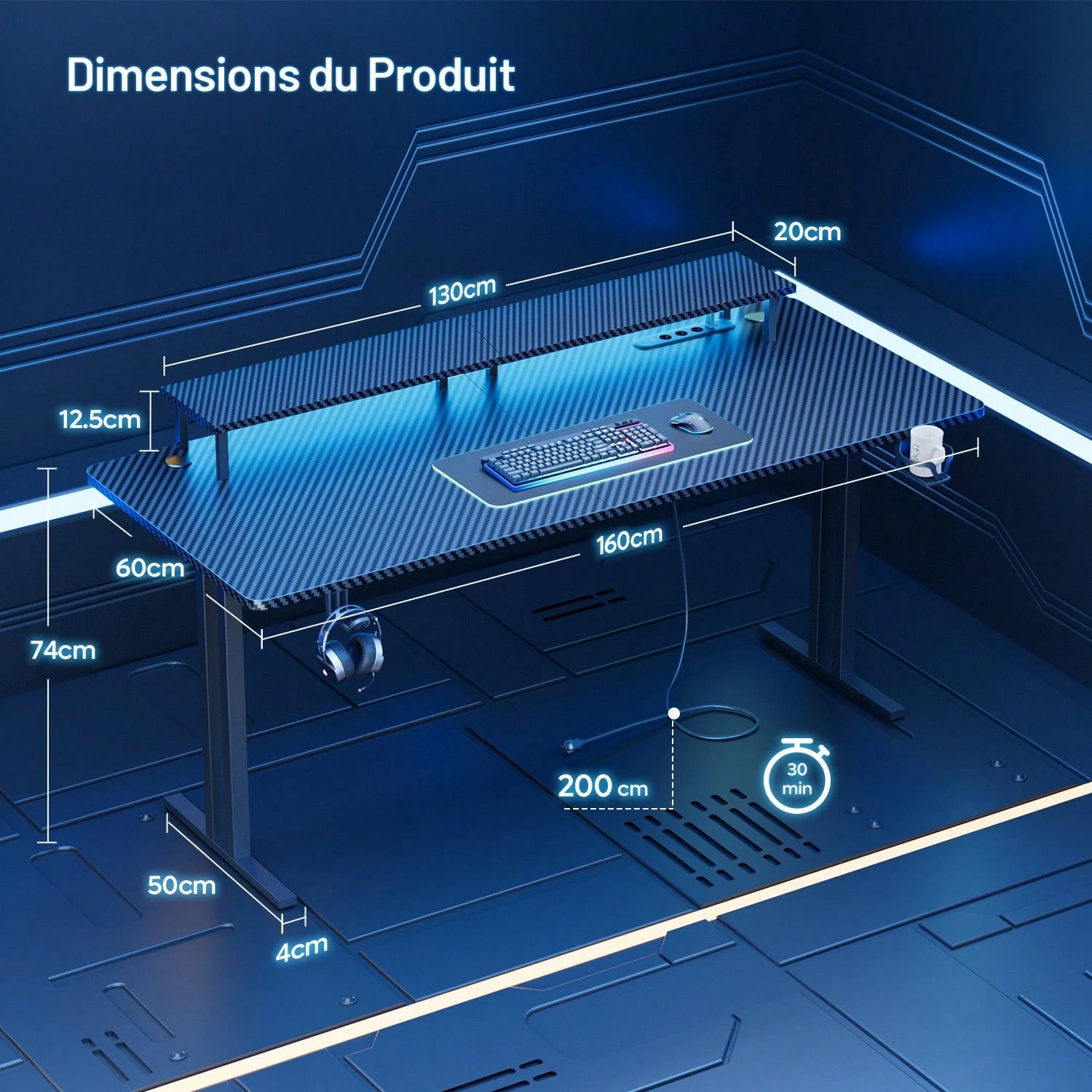 Tavolo da gioco con LED, scrivania da gioco con 3 prese di corrente e 2 porte USB