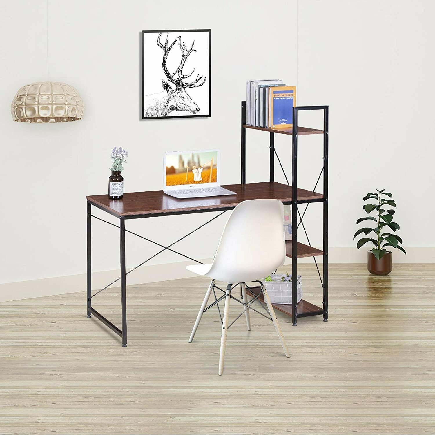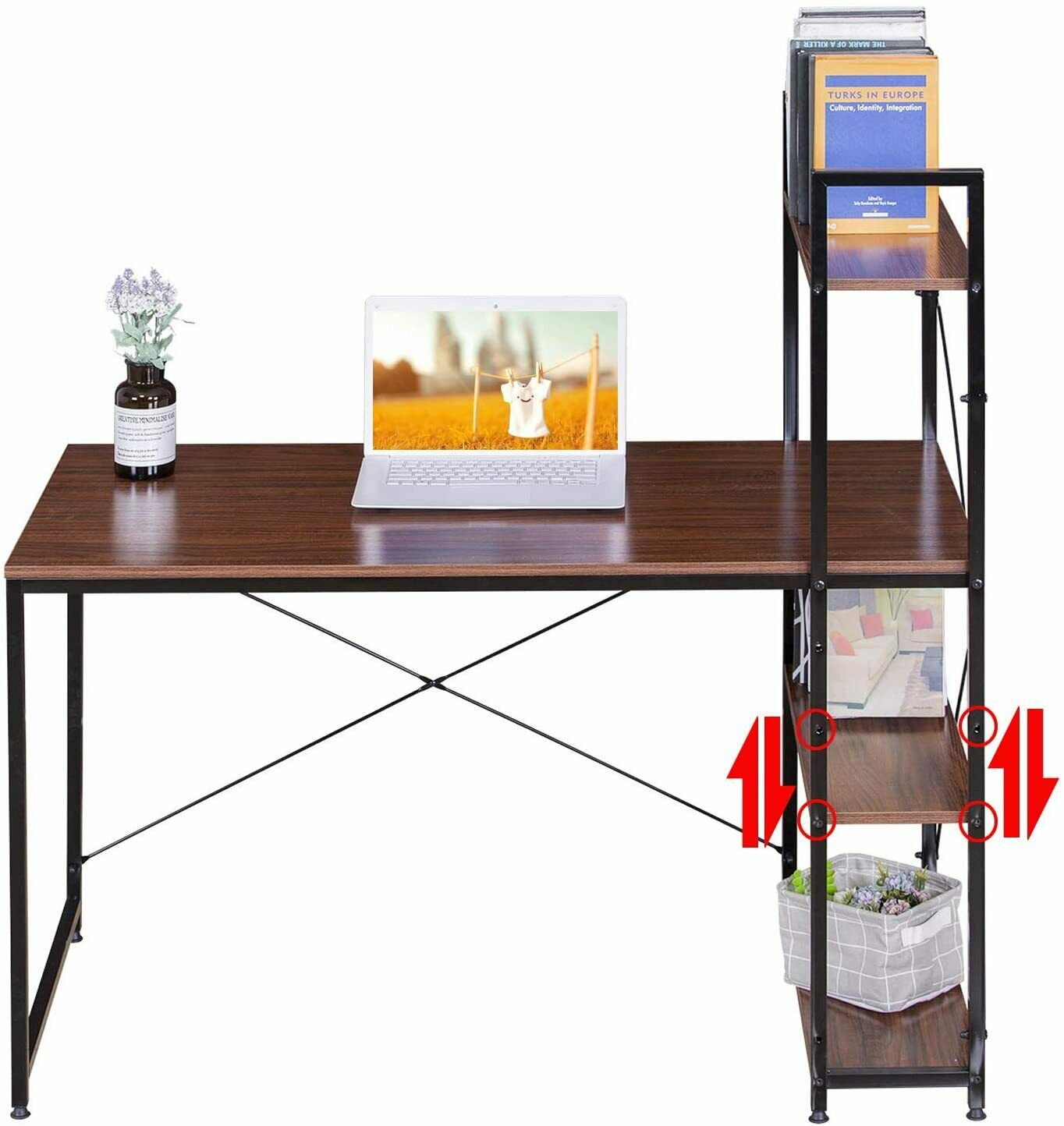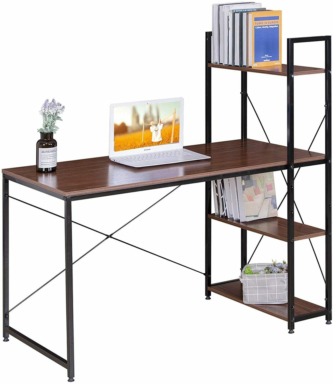 Scrivania con 4 Ripiani Tavolo da Lavoro per PC in Acciaio Legno Marrone