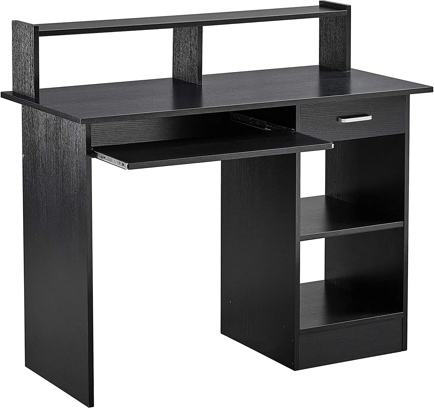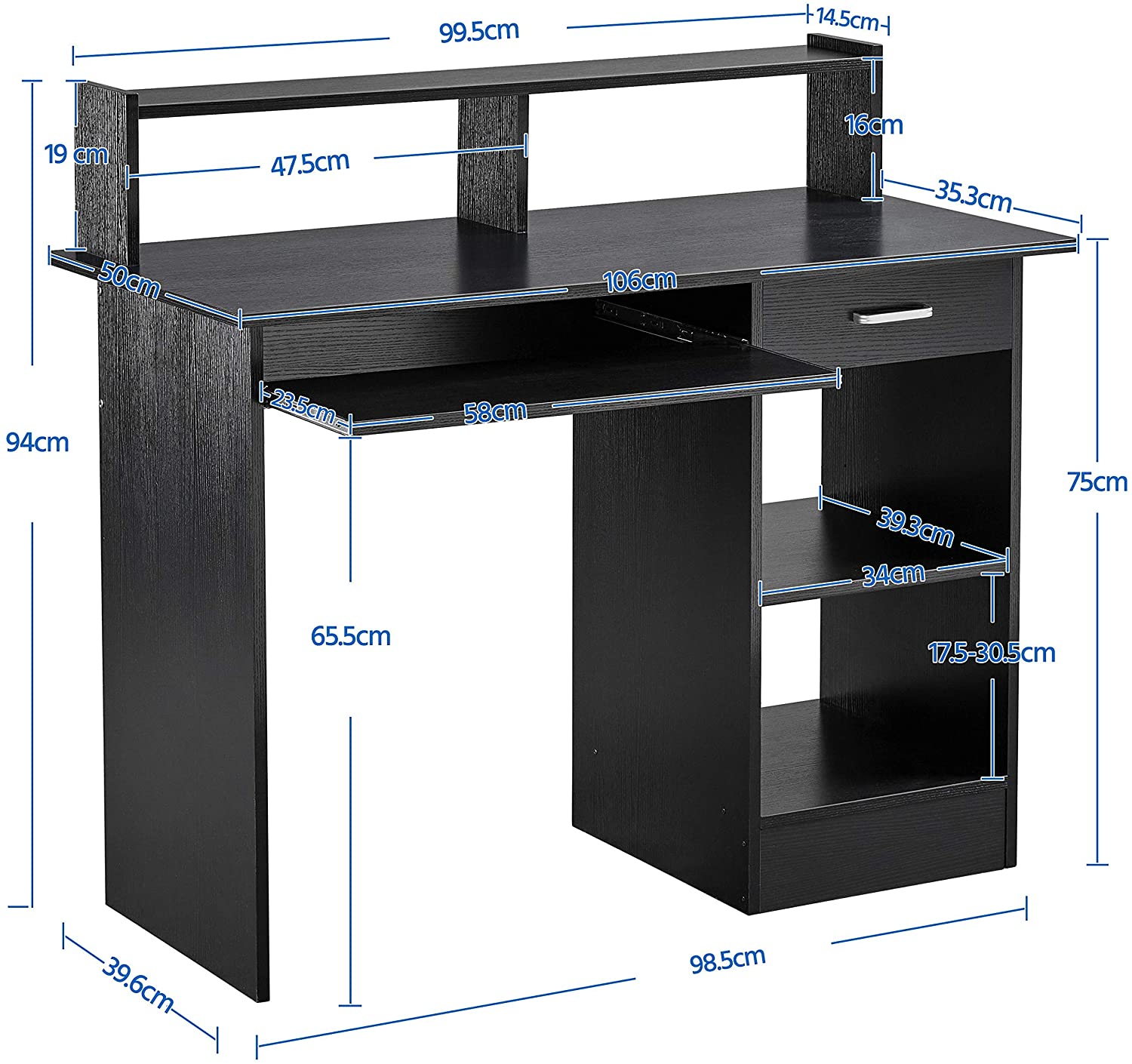 Scrivania per Computer Tavolo per PC con Cassetto Scrittoio con Libreria da Ufficio Studio Salvaspazio Cameretta 106 x 50 x 94 cm Nero Questa spaziosa scrivania per PC ha una superficie di 106 x 50 cm (LxW) con un'ampia superficie con un sacco di spazio per soddisfare le esigenze della...