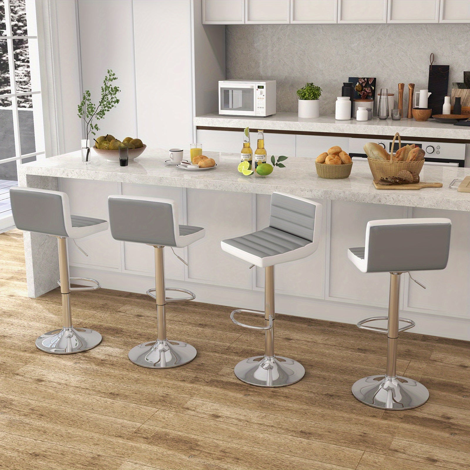 Sedia bar girevole con altezza regolabile, ideale per cucine moderne e spazi conviviali.