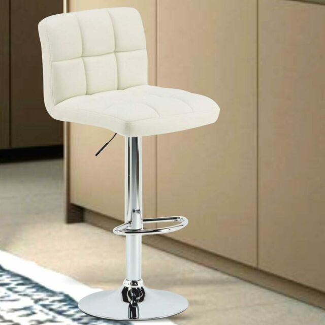 Set 2 Sgabelli Cucina Seduta Pelle Imbottita Sgabello Girevole Casa Bar Bianco