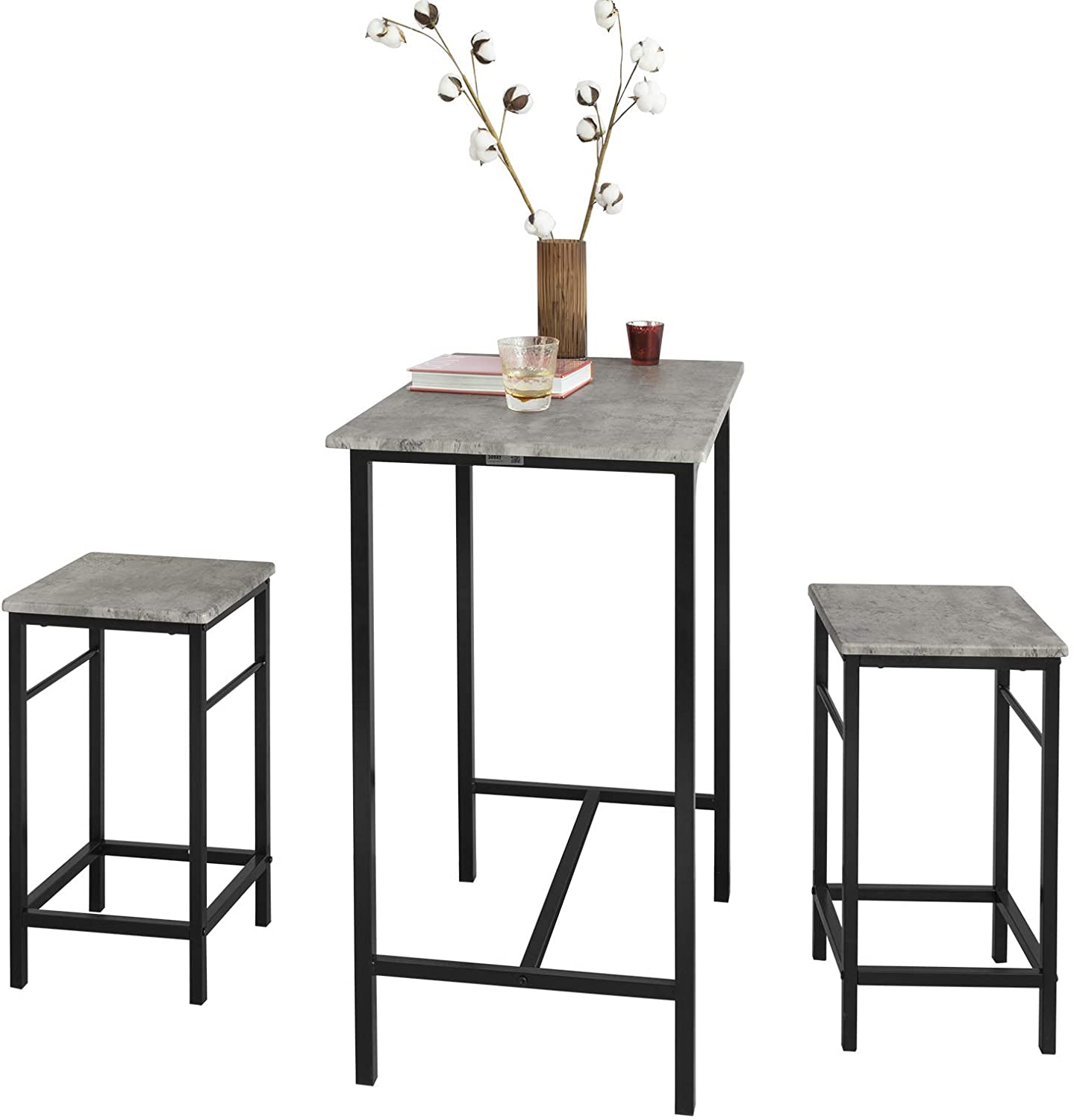 Uno set tavolo bar per la cucina, bar, pizza al taglio, caffè, o kebab con una verniciato a polvere moderna legno ferro e legno die MDF come da foto Questo set bar dal design classico è composto da 2 sgabelli bar e un grande tavolo. Si adatterà a quasiasi ambiente...