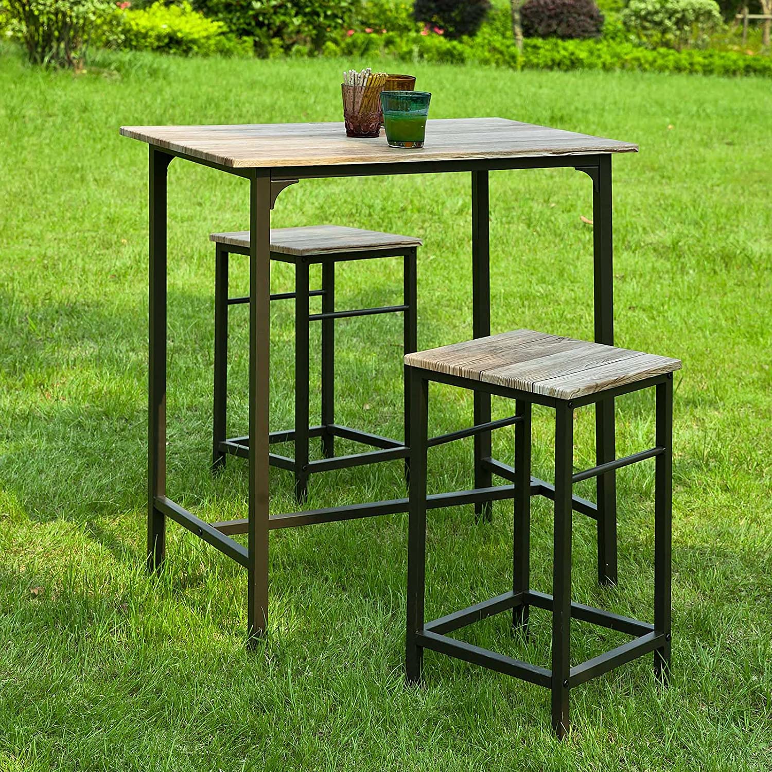 Set 3 Pezzi Tavolo con 2 sgabelli, Set di mobili da Balcone