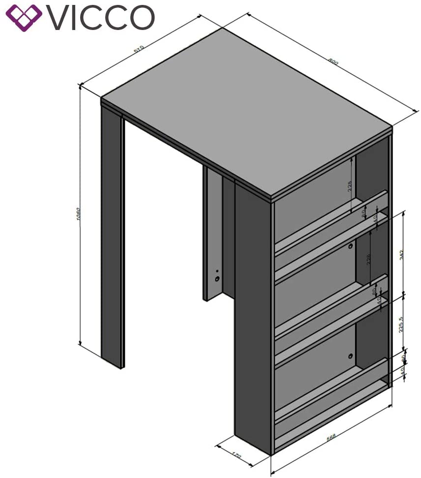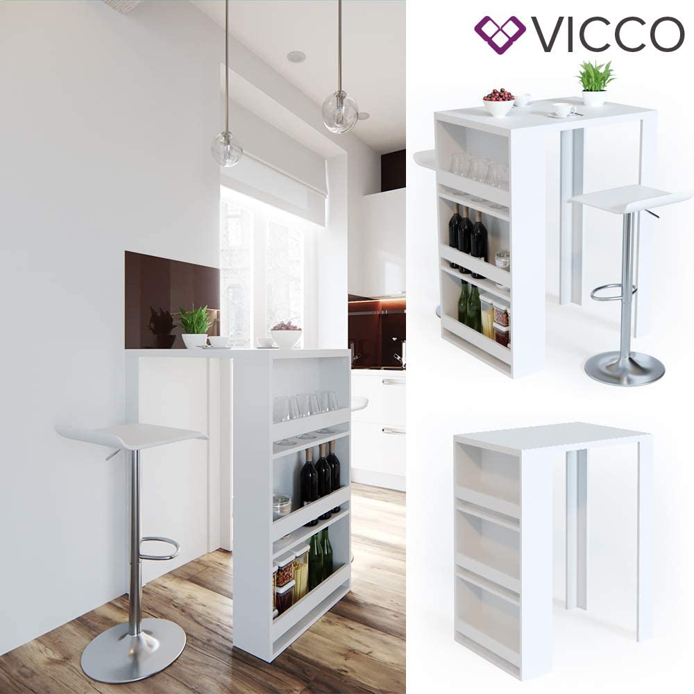 Vicco tavolo da bar Penisola Bancone Tavolino caffè 3 livelli Bianco