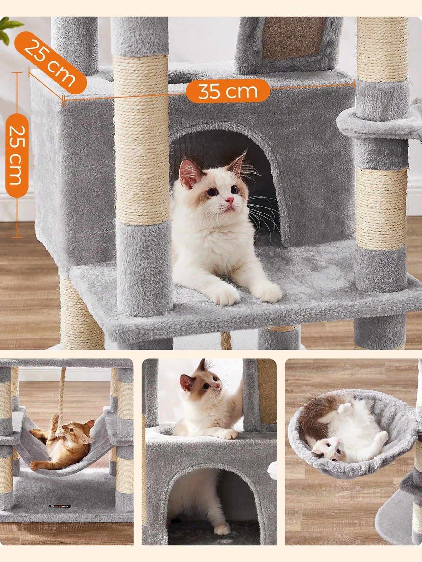 Comfort a tutto tondo: L'intero albero per gatti è ricoperto di morbido peluche per un' accogliente e rilassante.