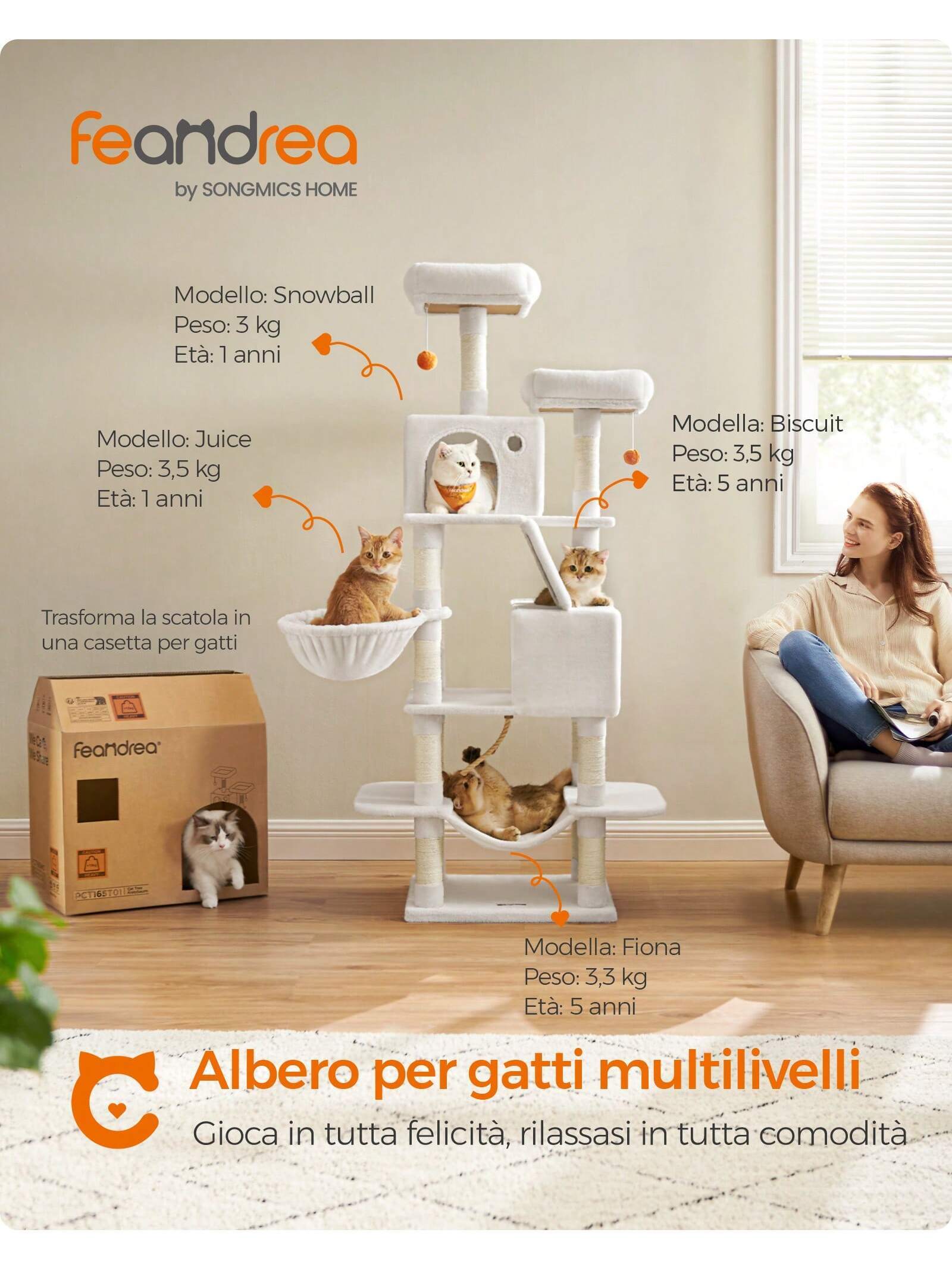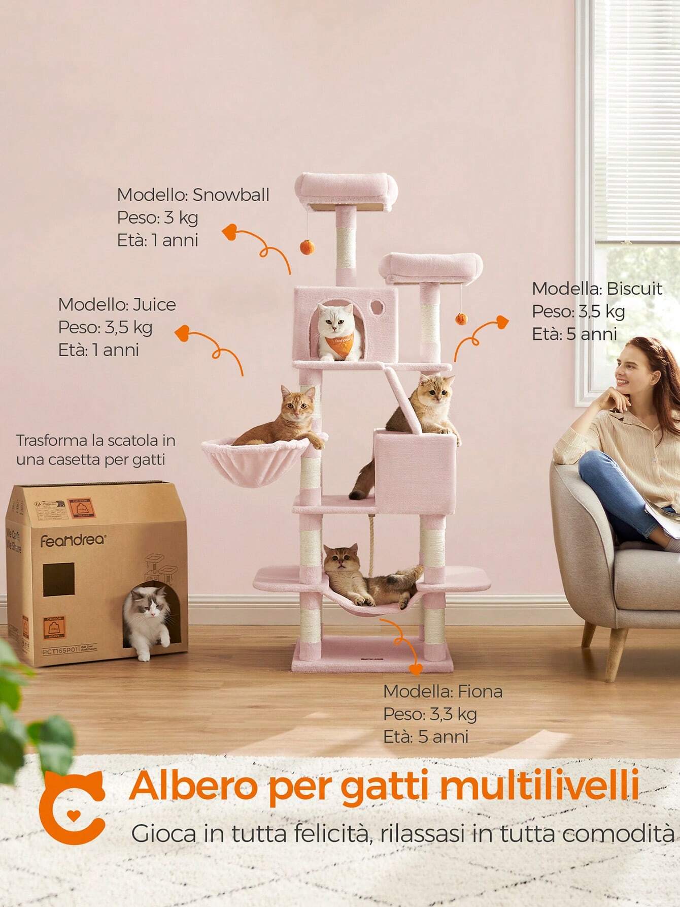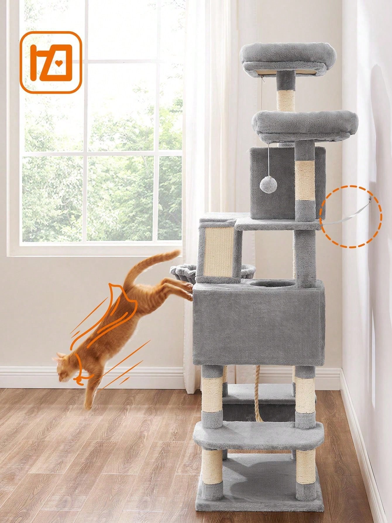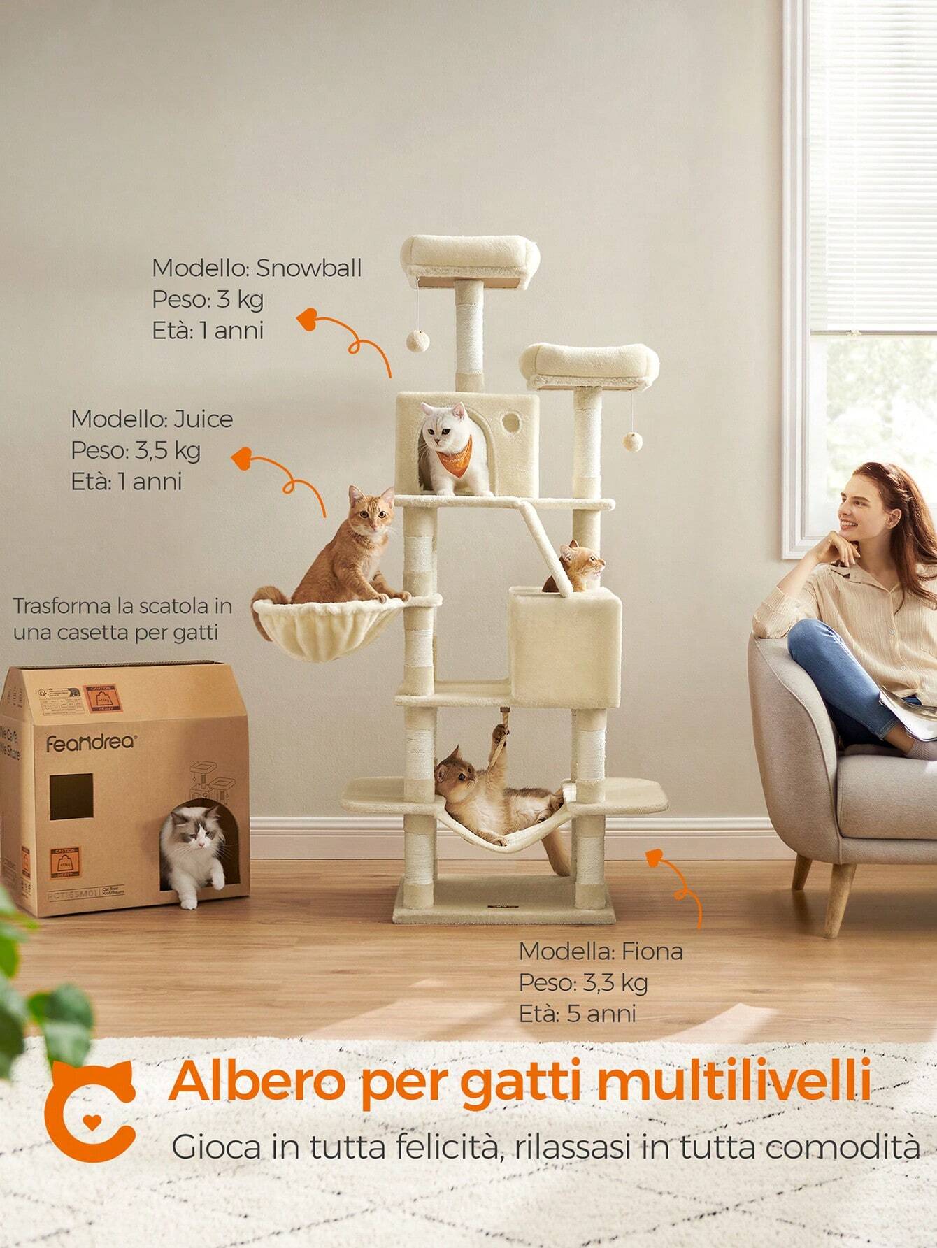 Soprattutto, la sicurezza: Materiali di qualità, una base rinforzata e un kit antiribaltamento forniscono un posto stabile e sicuro per far saltare su e giù i tuoi gatti.