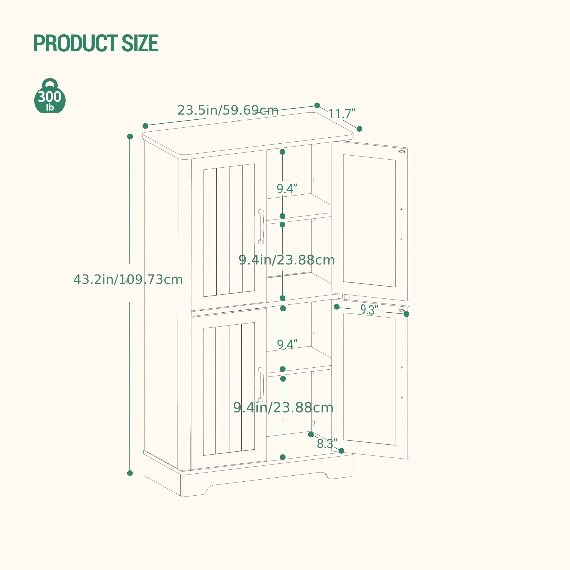 Con quattro porte eleganti e scaffali regolabili, offre spazio infinito per riporre tutto ciò che desideri.