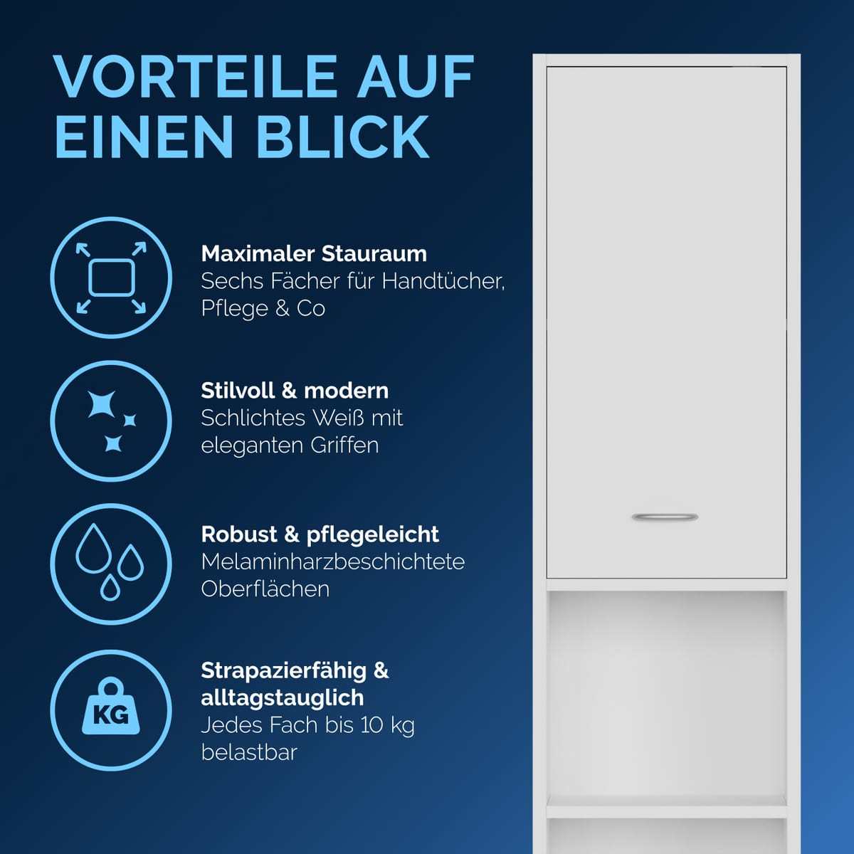 AMPIO SPAZIO DI CAPACITÀ - L'armadietto Neapel di, con dimensioni 180x30x30 cm, offre ampio spazio per tutti i tuoi accessori da bagno. Grazie alle sue dimensioni compatte, questo armadietto da bagno è ideale anche per spazi più piccoli, offrendo una capacità di archiviazione sufficiente FLESSIBILITÀ - L'alto armadietto presenta 6...