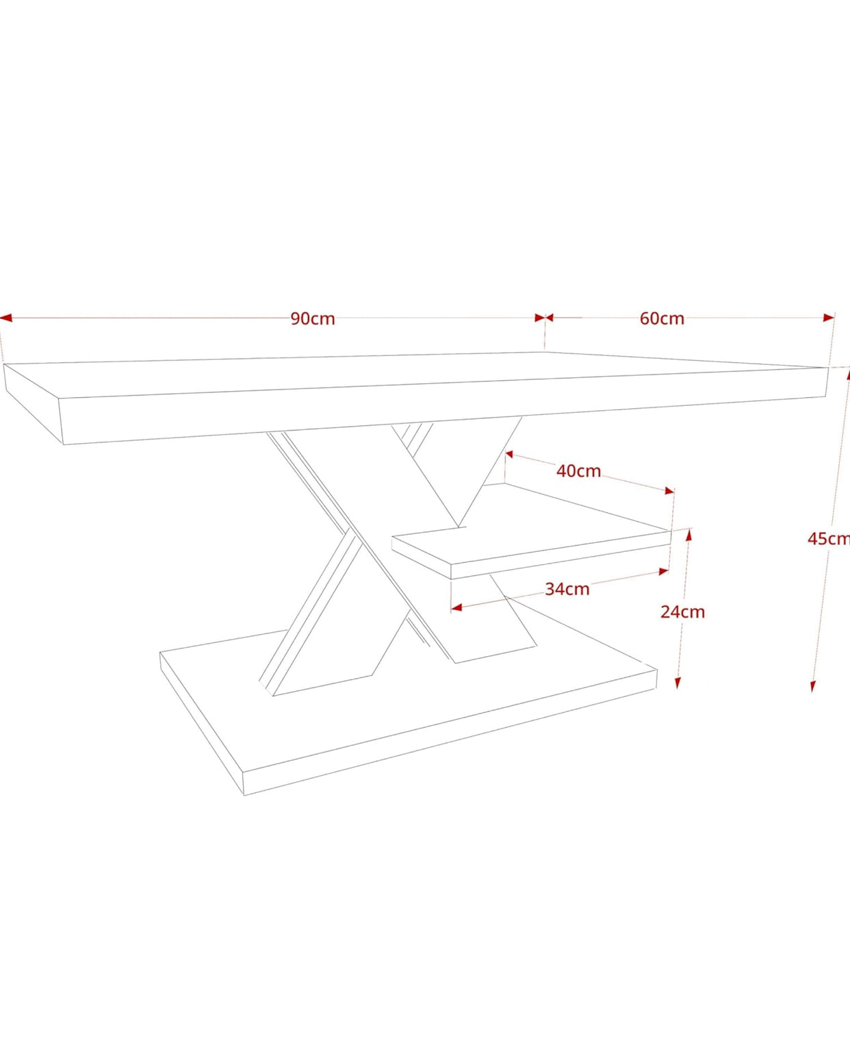 Tavolino Design Moderno Piano 50mm Tavolino da Salotto 90x45x60cm