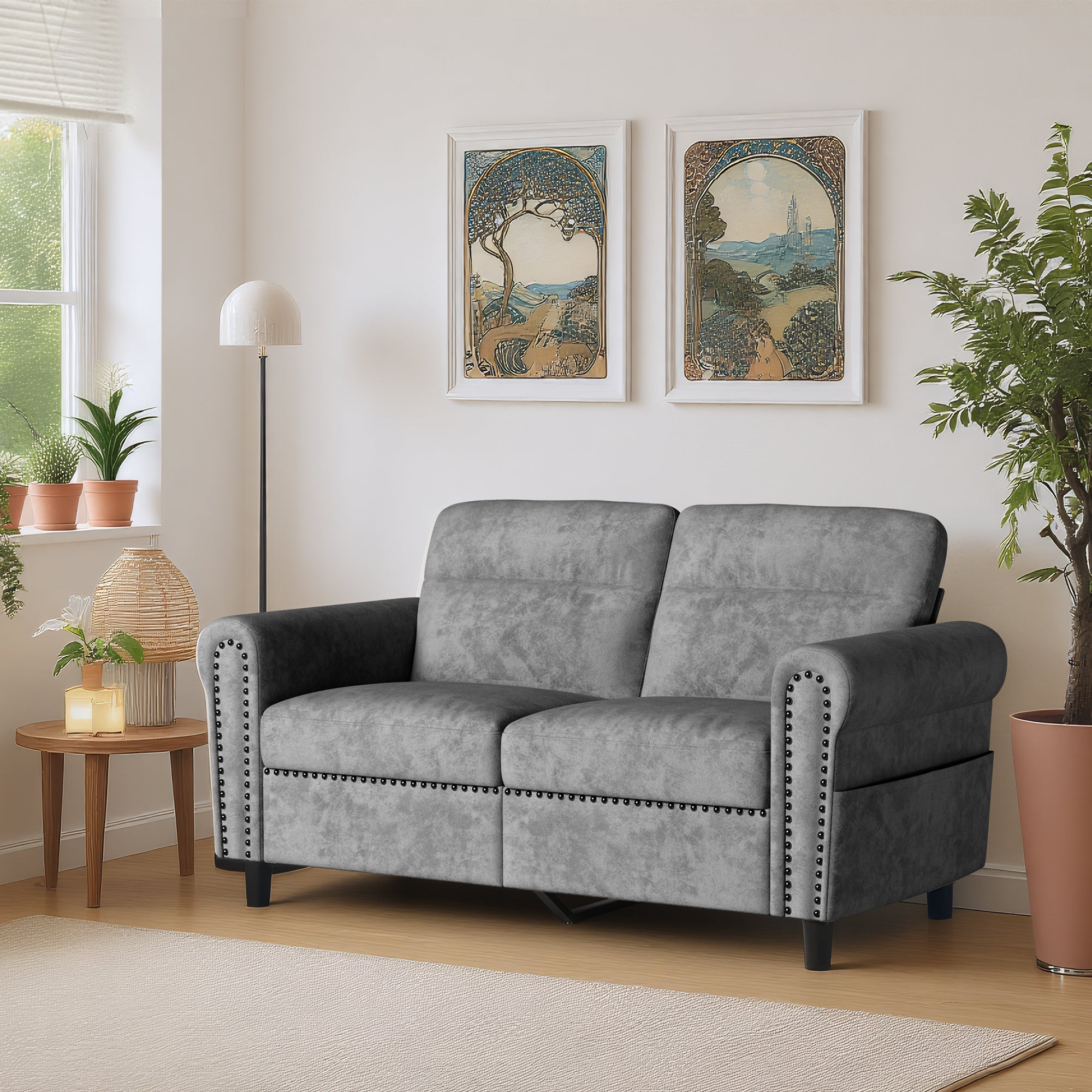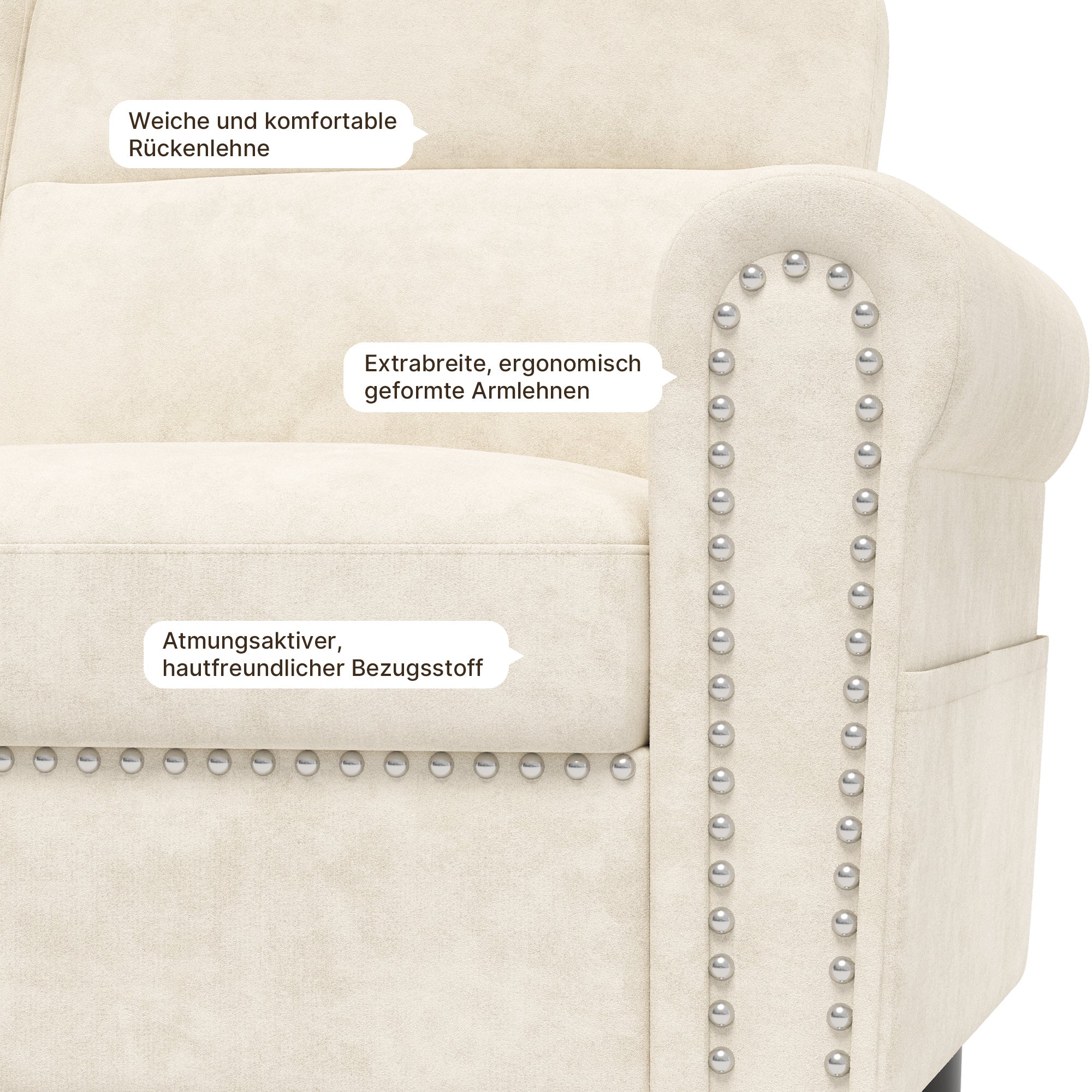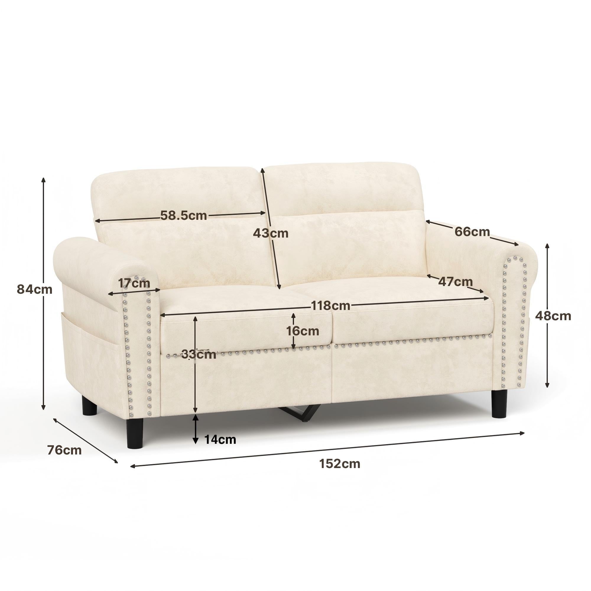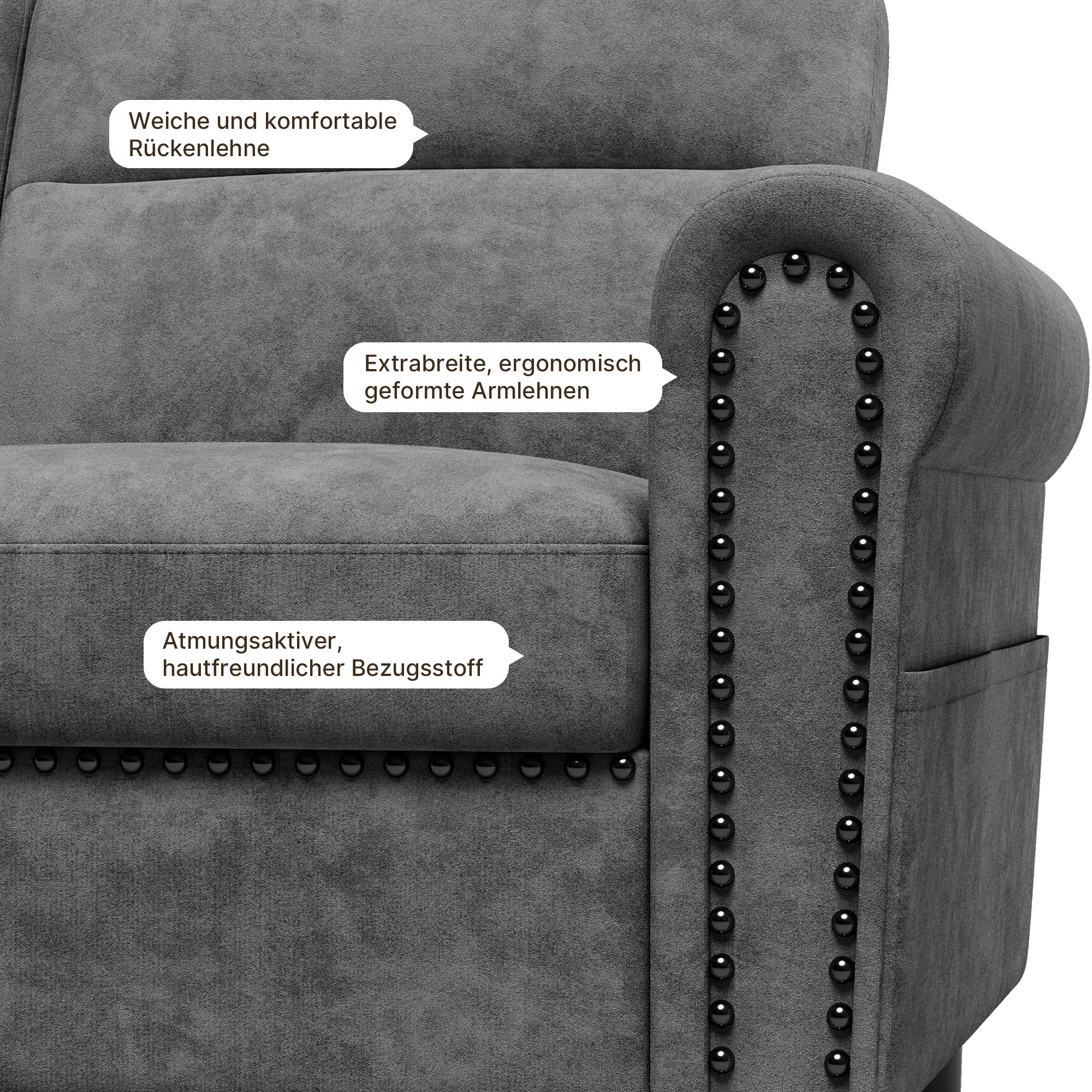 Costruzione robusta fino a 150 kg per sedile, 4 gambe + rinforzo e cinghia per fissaggio sicuro del cuscino Tasca Laterale Pratica per Piccoli Oggetti, Comodo Ripiano per Telecomando e Riviste Copertura Confortevole con Aspetto in Camoscio e Dettagli a Rivetti, Braccioli Imbottiti e Tessuto Traspirante Divano a 2 posti...