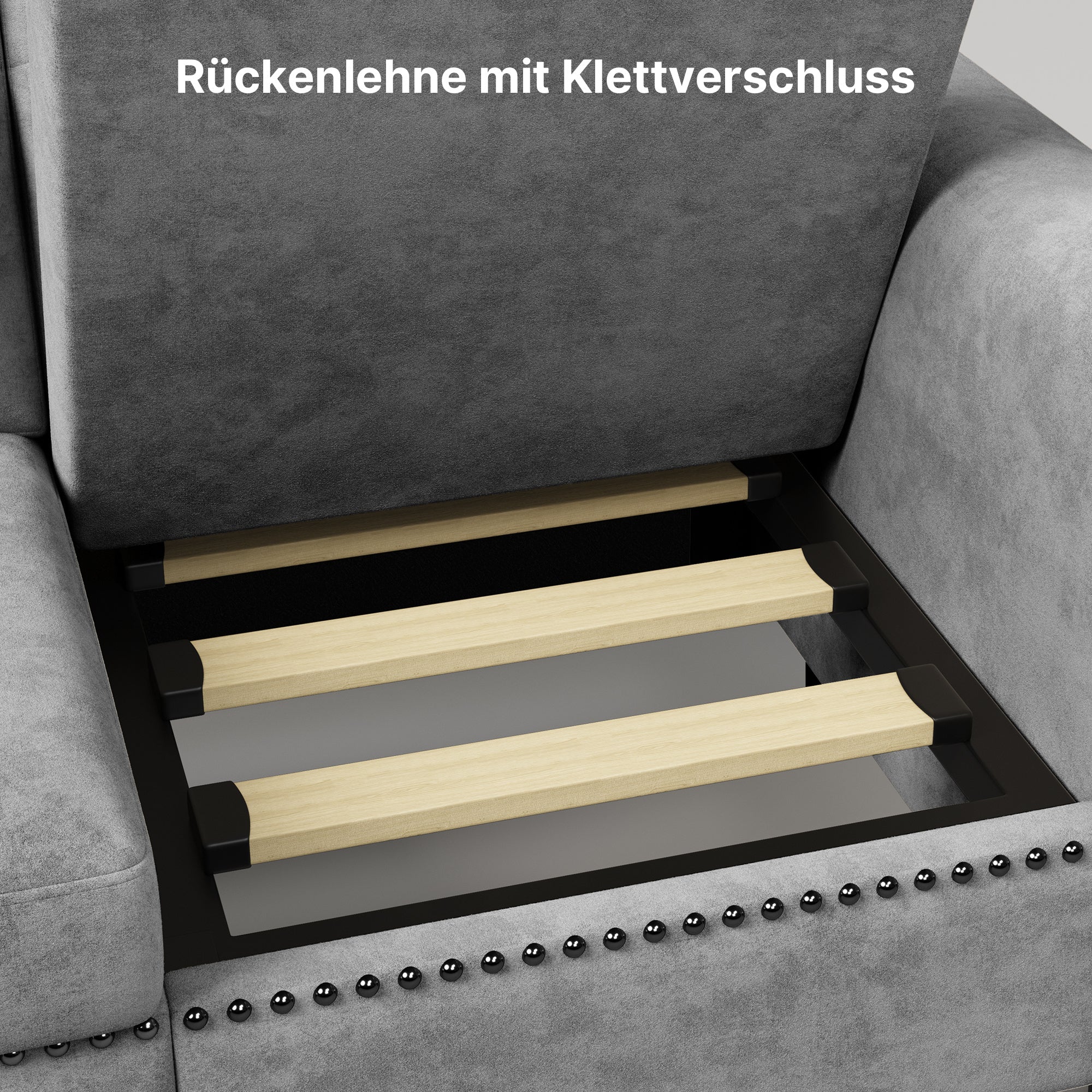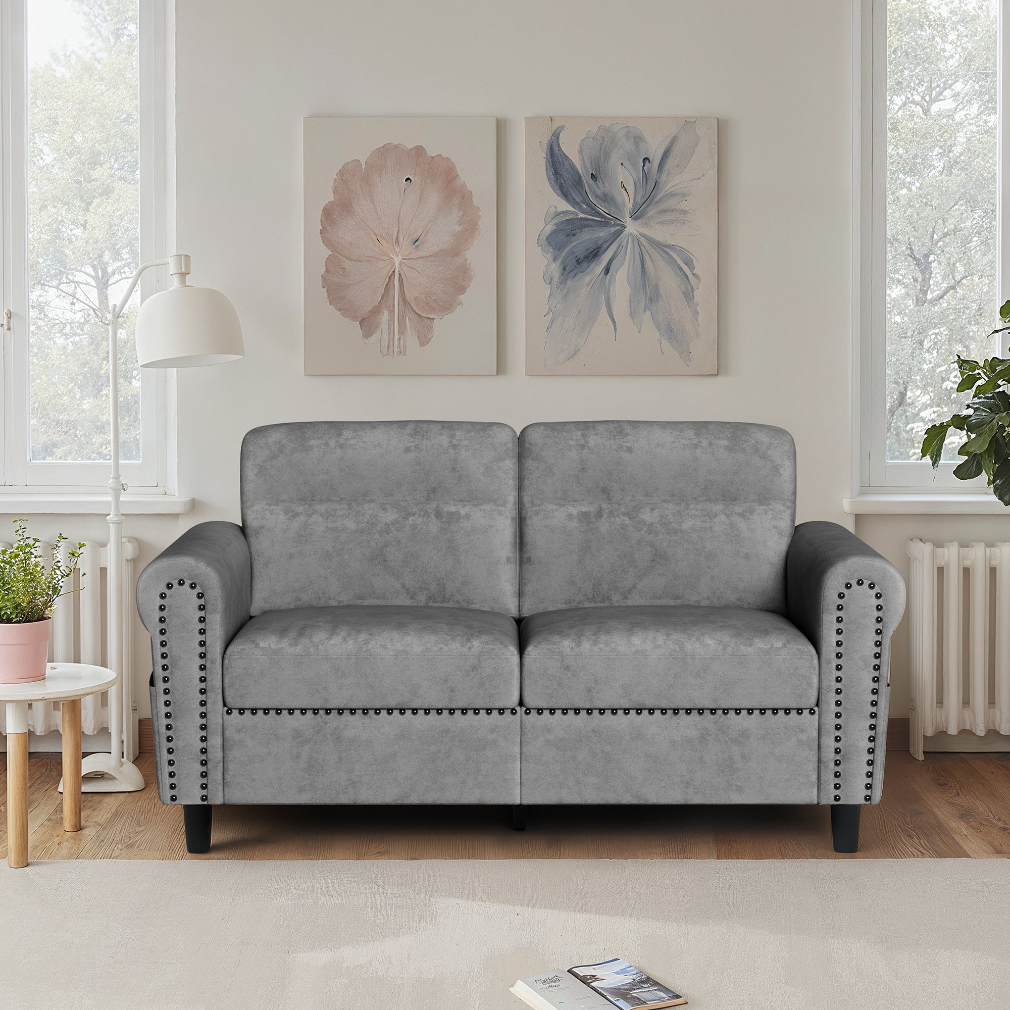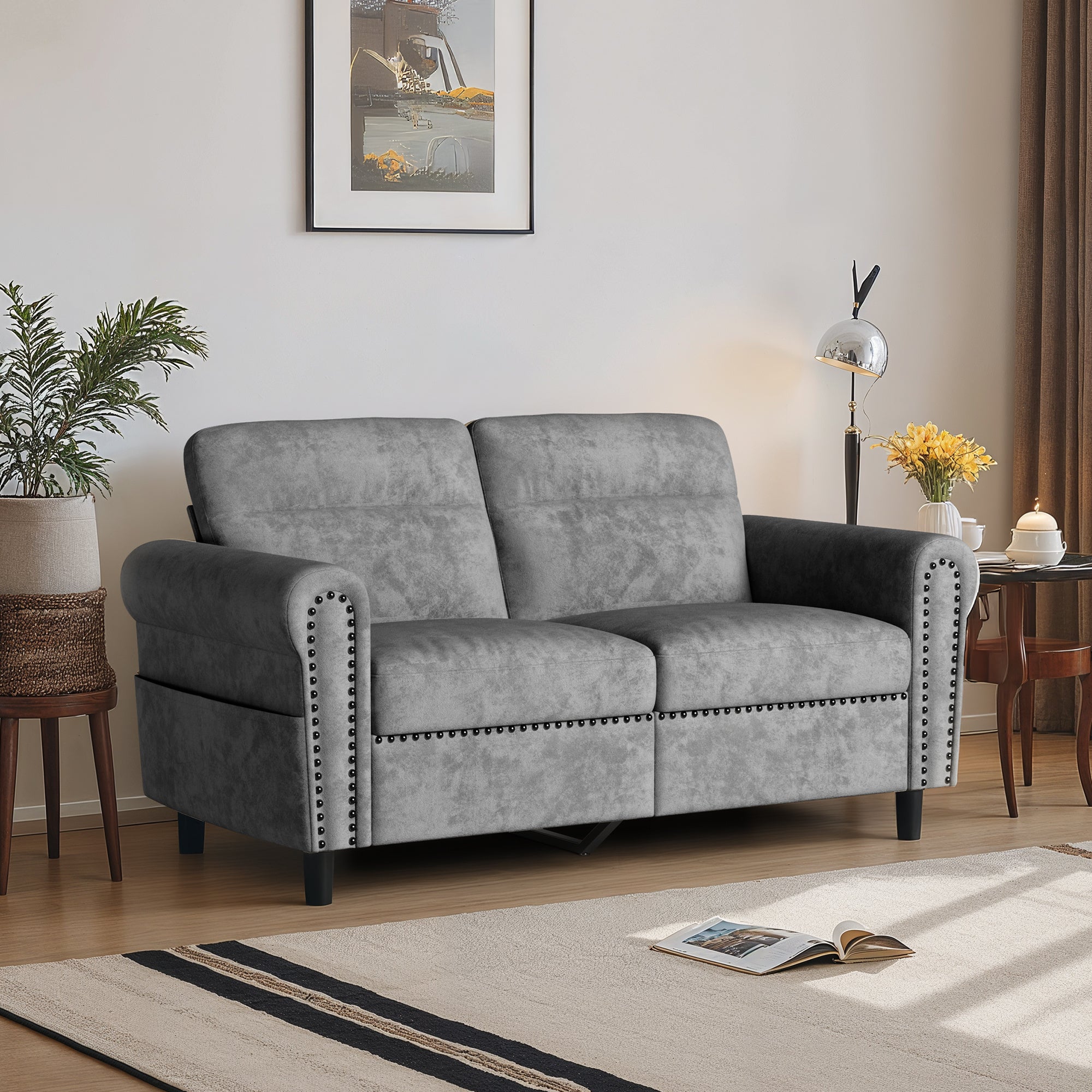 Costruzione robusta fino a 150 kg per sedile, 4 gambe + rinforzo e cinghia per fissaggio sicuro del cuscino Tasca Laterale Pratica per Piccoli Oggetti, Comodo Ripiano per Telecomando e Riviste Copertura Confortevole con Aspetto in Camoscio e Dettagli a Rivetti, Braccioli Imbottiti e Tessuto Traspirante Divano a 2 posti...