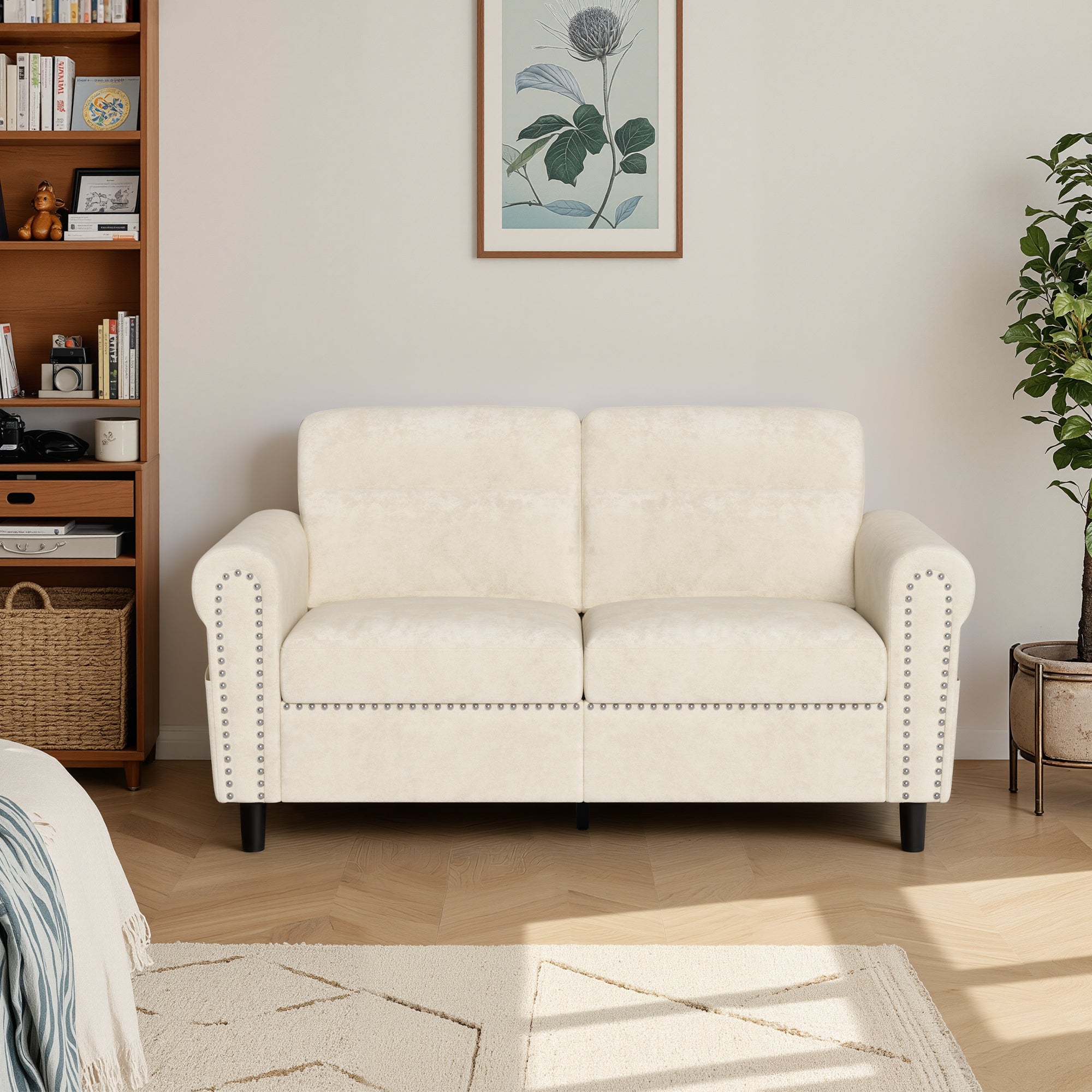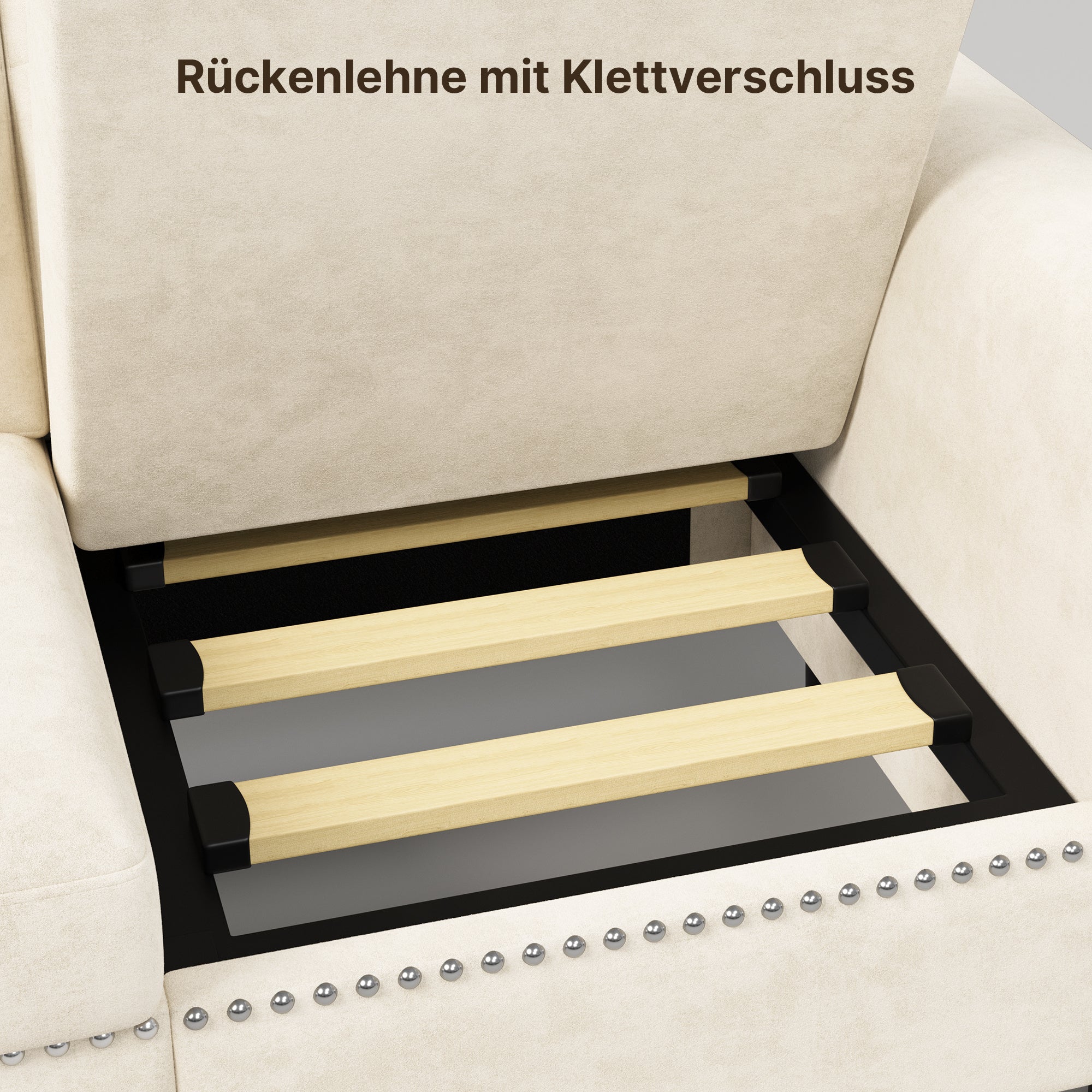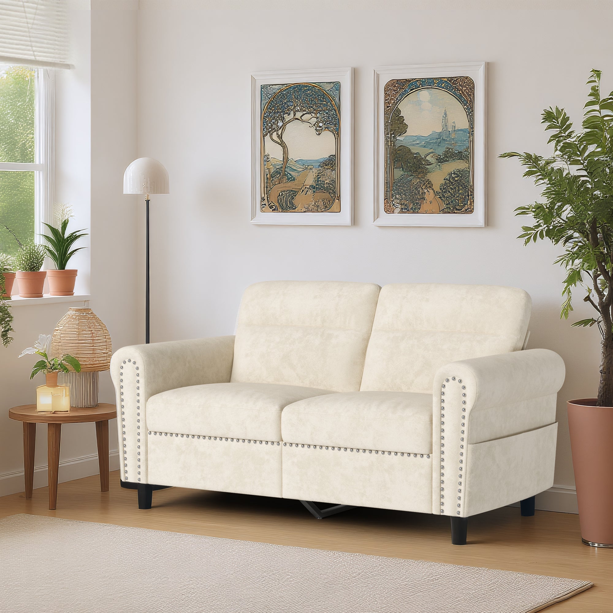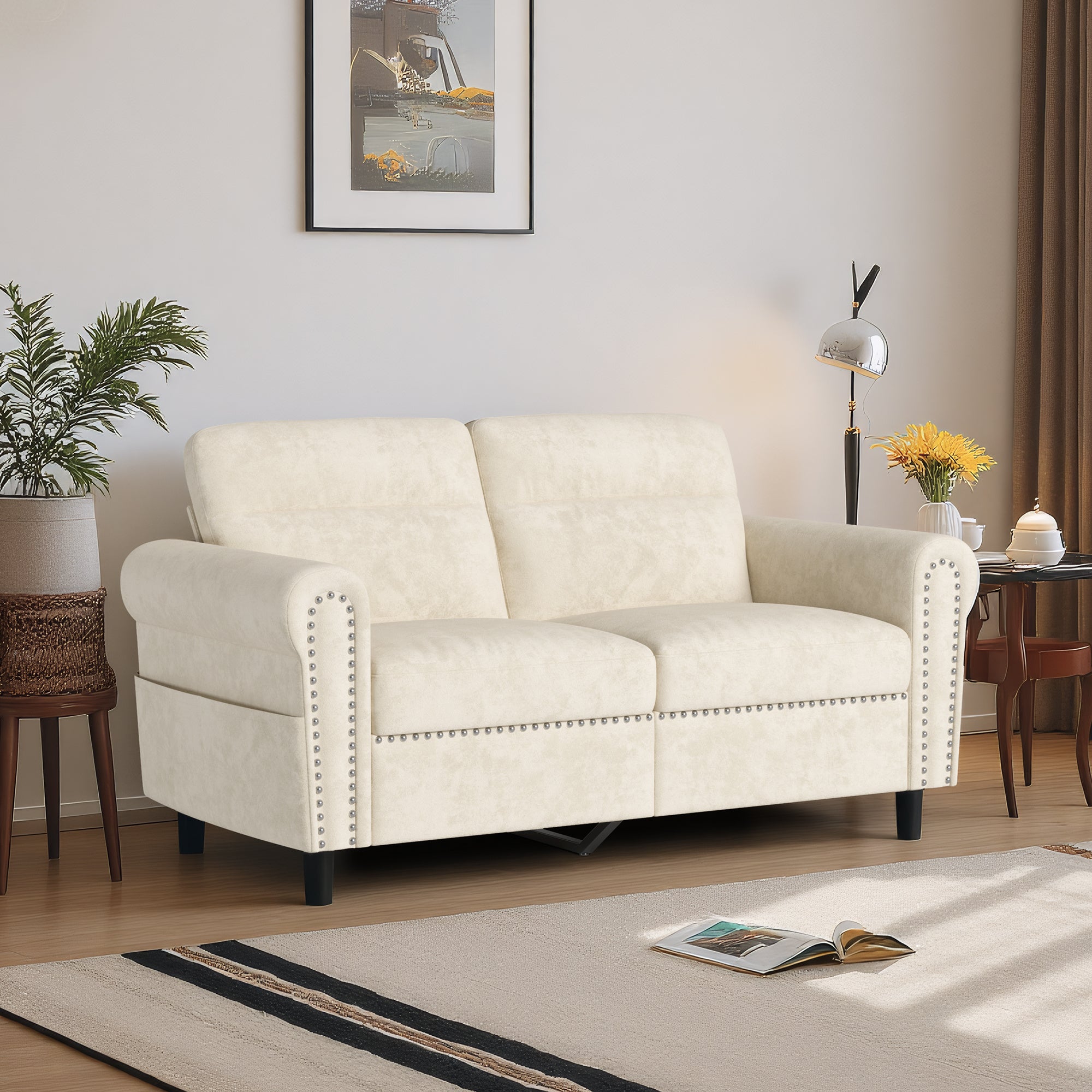 Costruzione robusta fino a 150 kg per sedile, 4 gambe + rinforzo e cinghia per fissaggio sicuro del cuscino Tasca Laterale Pratica per Piccoli Oggetti, Comodo Ripiano per Telecomando e Riviste Copertura Confortevole con Aspetto in Camoscio e Dettagli a Rivetti, Braccioli Imbottiti e Tessuto Traspirante Divano a 2 posti...
