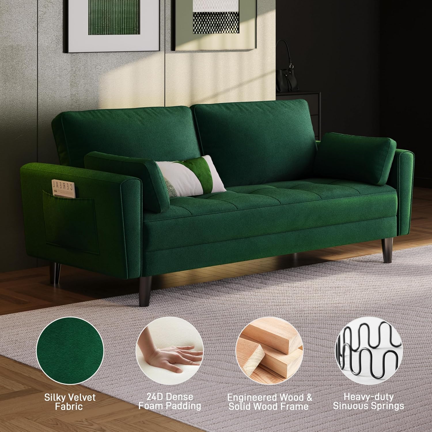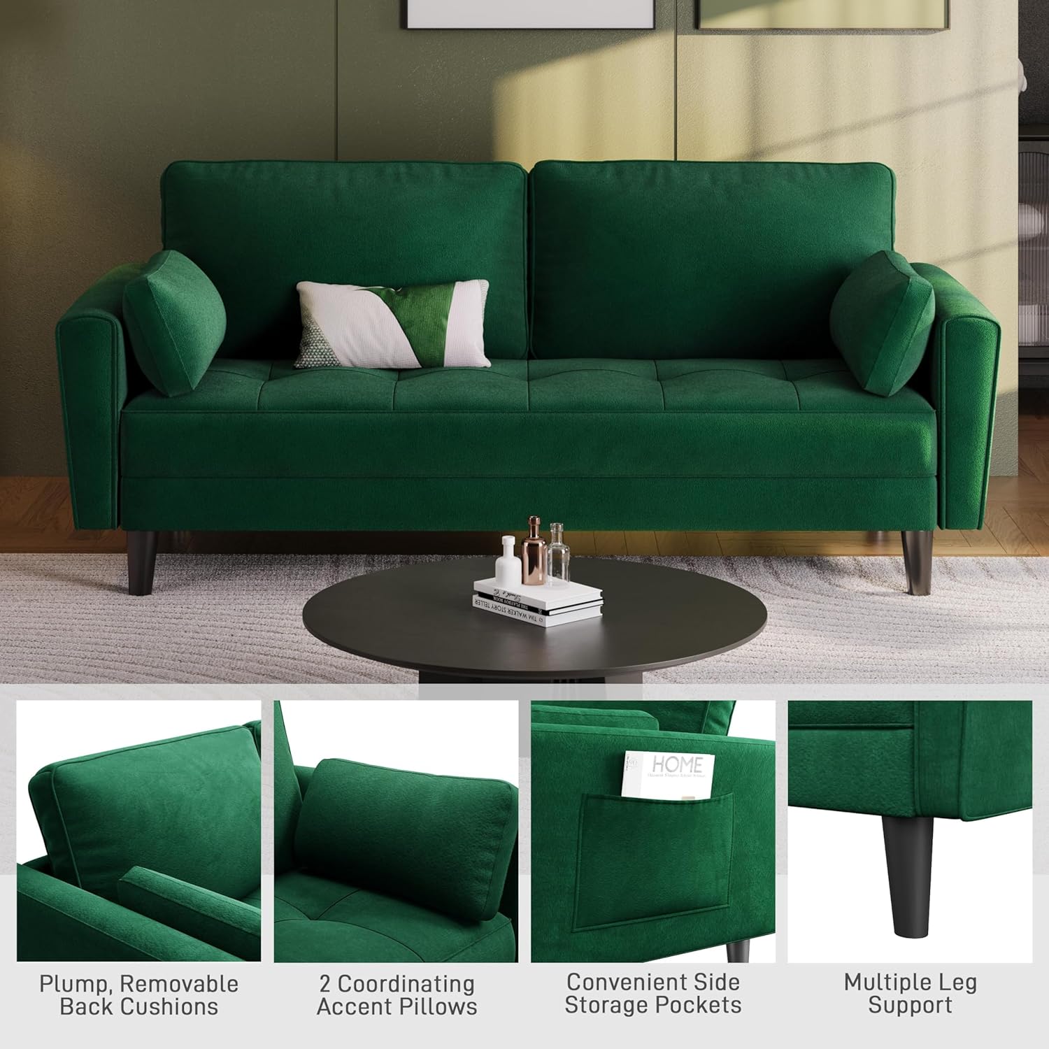 【Morbido ed elastico】Nostro divanetto a 2 posti offre comfort ottimale con imbottitura in schiuma ad alta densità, 11 molle robuste per il sedile e supporto extra grazie a 2 cuscini per la schiena e 2 cuscini lombari, per una combinazione ideale di morbidezza e sostegno. Con tasca portaoggetti】Il nostro...