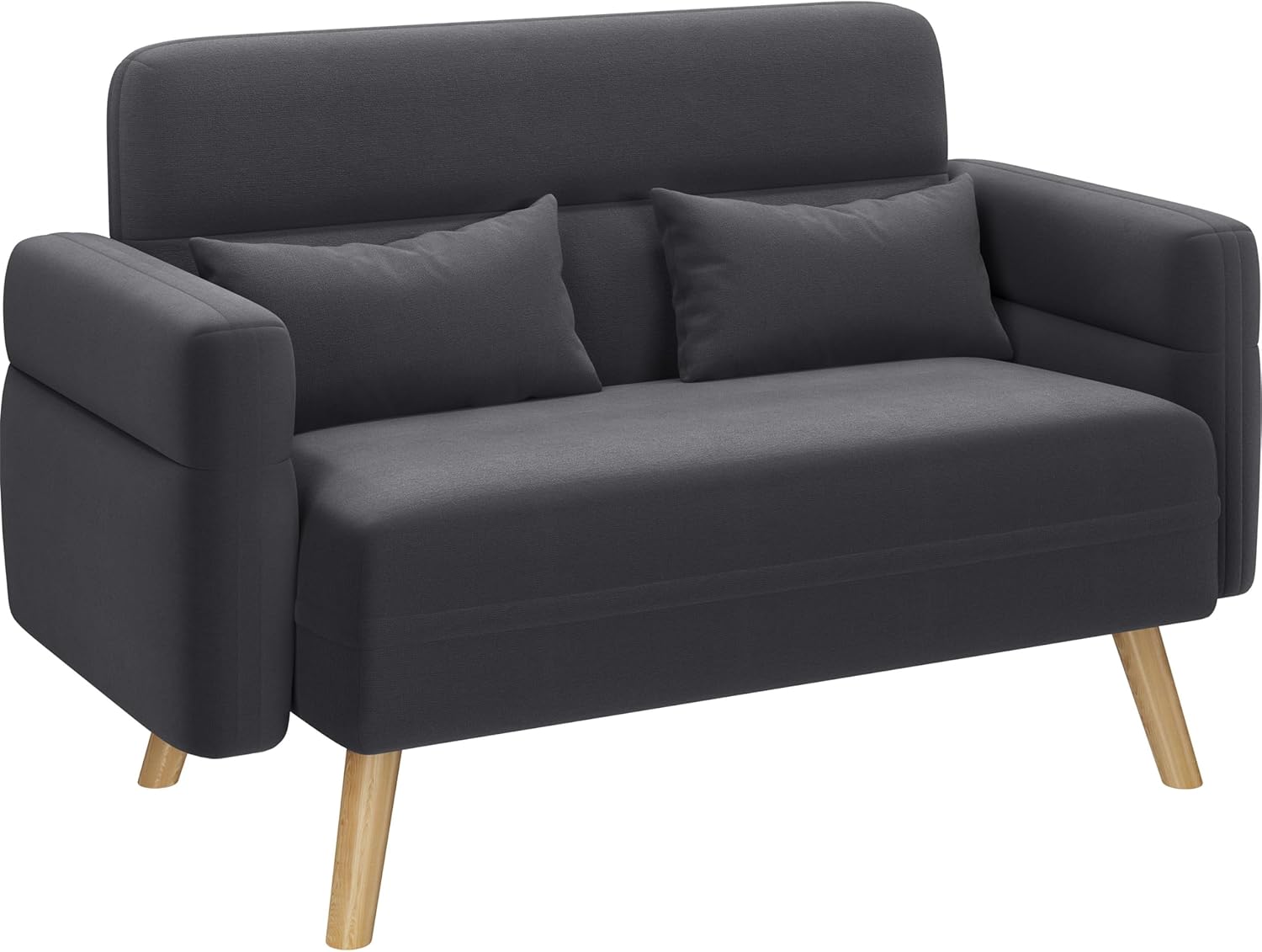 Divano Imbottito a 2 Posti Divanetto in Tessuto con Cuscini Lombari Gambe