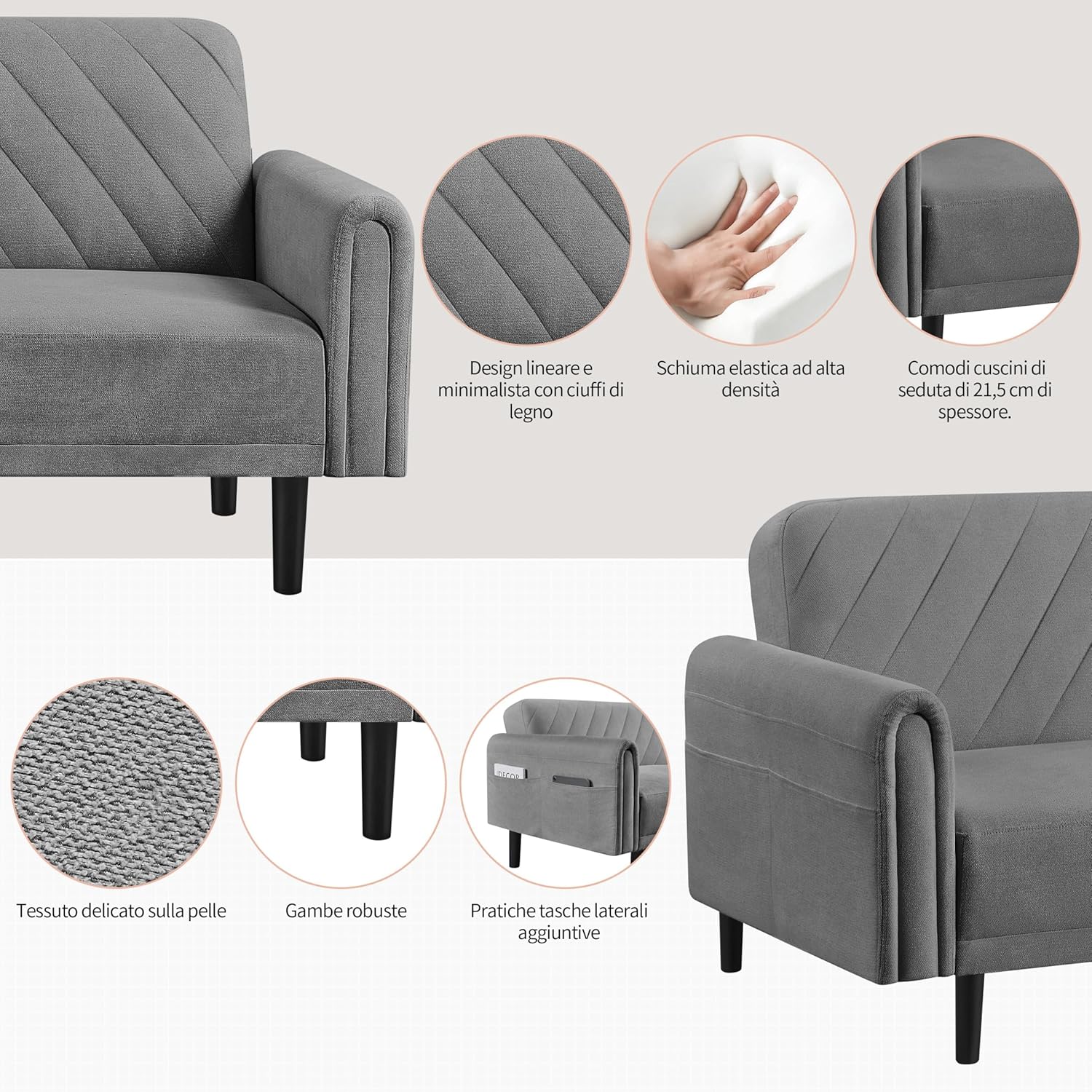 【Materiali selezionati】Questo divano letto realizzato in resistente multistrato e rivestito in poliestere durevole.