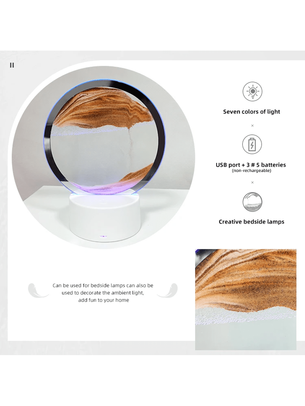 Lampada Da Tavolo A Led Alla Moda Immagine D'arte In Movimento 3d Con Sabbia Che Scorre Velocemente E Luce Led Lampada Da Tavolo A Led Alla Moda Immagine D'arte In Movimento 3d Con Sabbia Che Scorre Velocemente E Luce Led Colore: lampada sabbie mobili Batterie incluse: Non Alimentazione elettrica: Cavo...