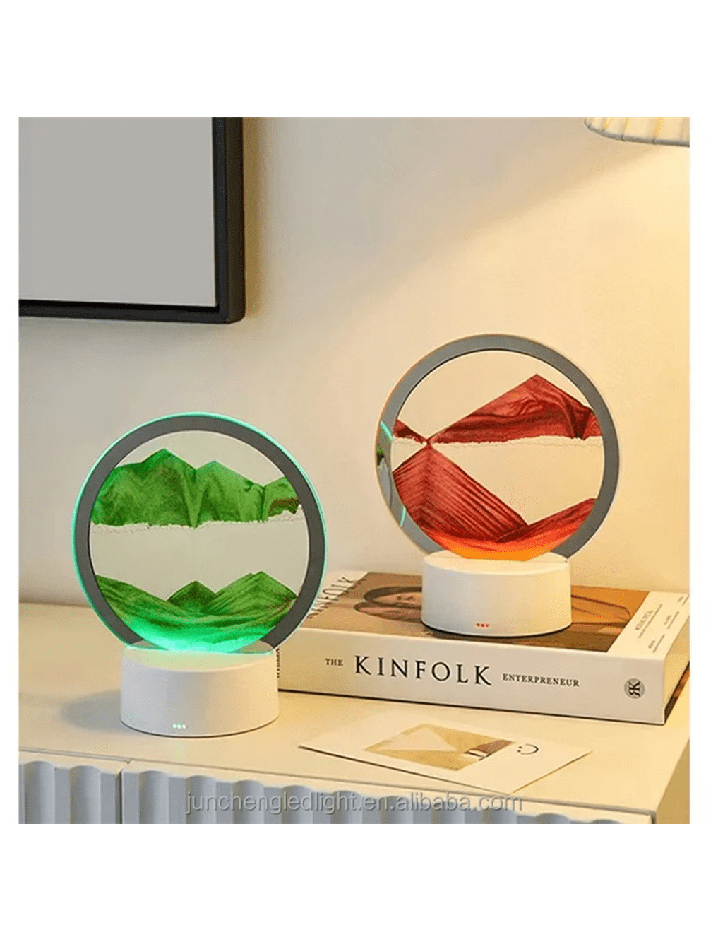 Lampada Da Tavolo A Led Alla Moda Immagine D'arte In Movimento 3d Con Sabbia Che Scorre Velocemente E Luce Led