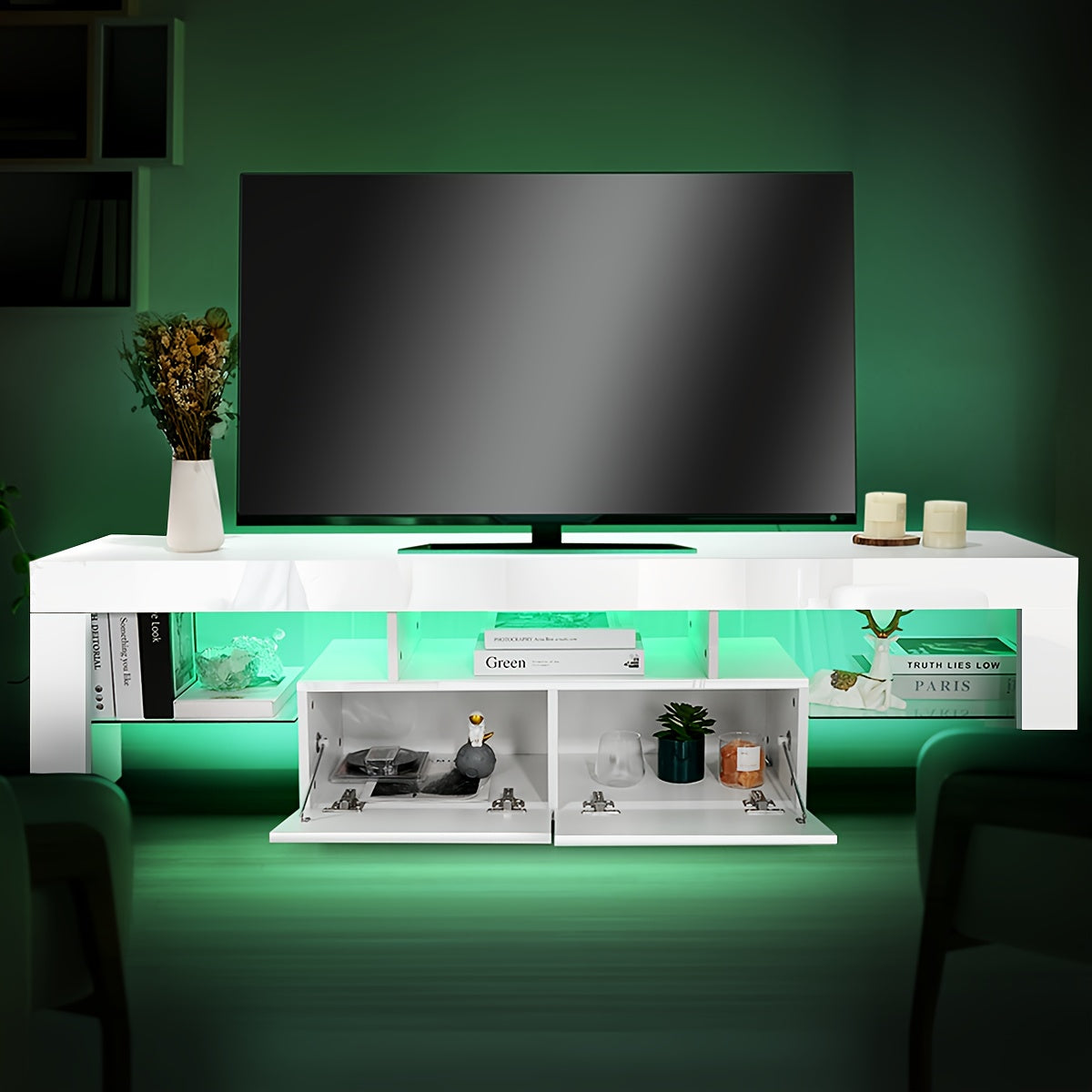 Trasforma il tuo spazio con questo elegante centro di intrattenimento in legno bianco! Perfetto per chi ama il design moderno e funzionale, combina stile contemporaneo con praticità. Due comodi cassetti nascondono il disordine, mentre gli scaffali aperti espongono i tuoi oggetti preferiti. L'illuminazione USB integrata crea un'atmosfera accogliente ideale per...