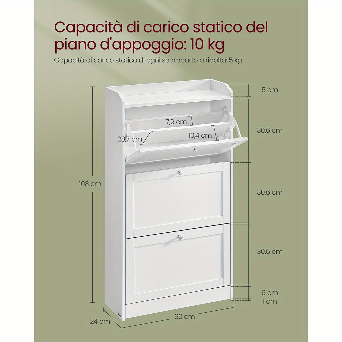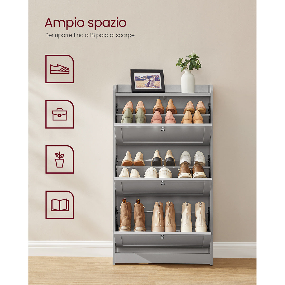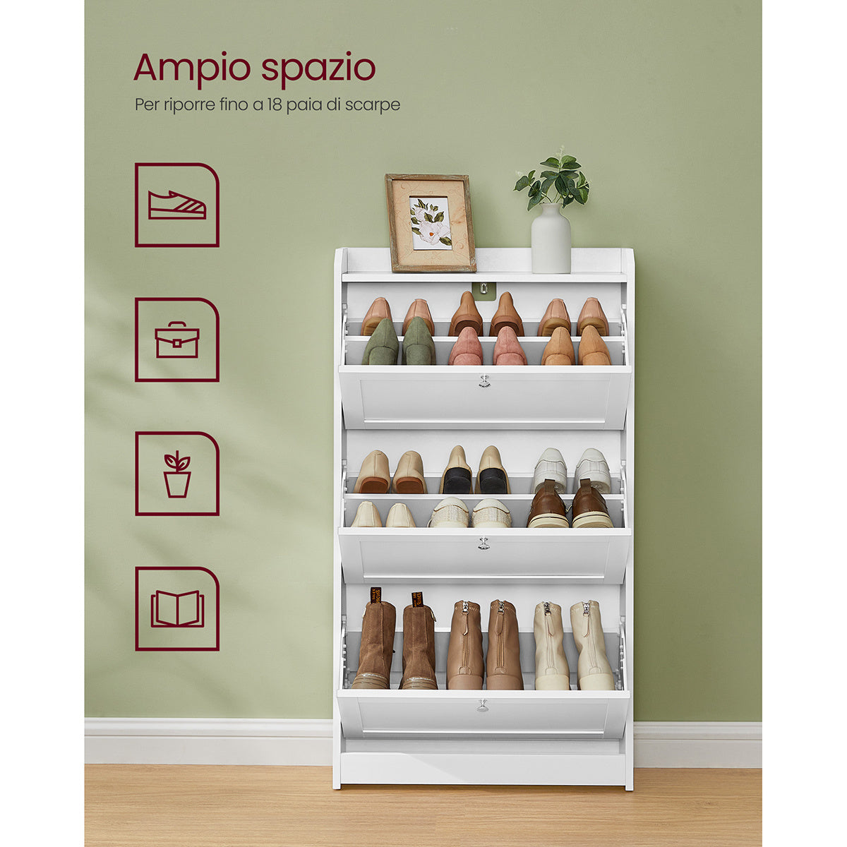 • Con divisori regolabili, ospita fino a 18 paia di scarpe mantenendo tutto perfettamente ordinato e facilmente accessibile.