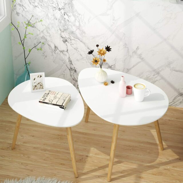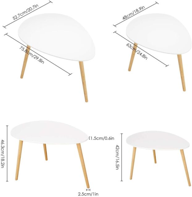 Set decorativo composto da due tavoli: tavolo grande (75x52x46 cm), tavolo piccolo (63x48x42 cm). L'esclusivo design moderno a forma di lacrima crea un aspetto elegante, rendendo entrambi i tavoli adatti a molti luoghi.