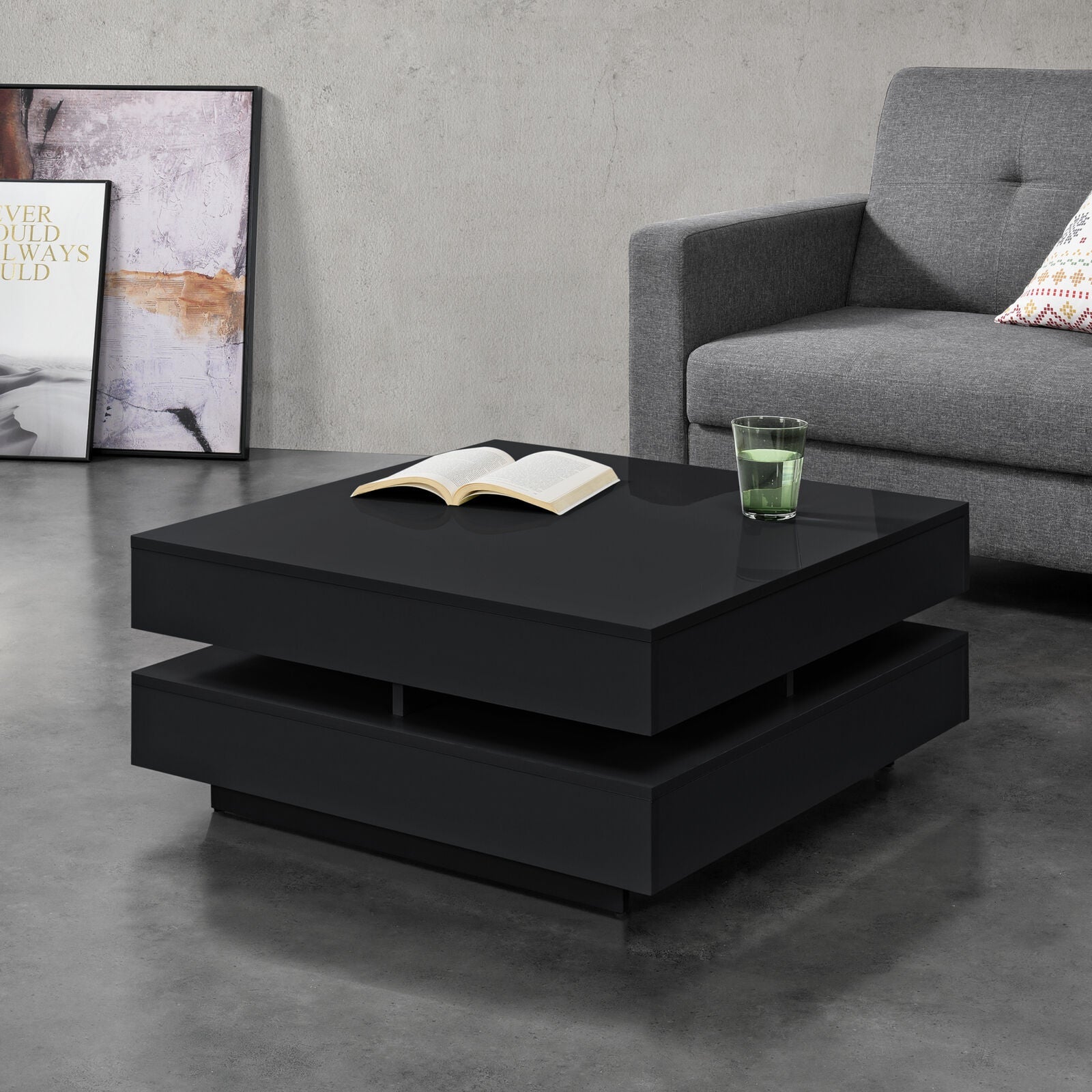 Tavolino Basso da caffè per Salotto/Soggiorno con Ripiano Nero