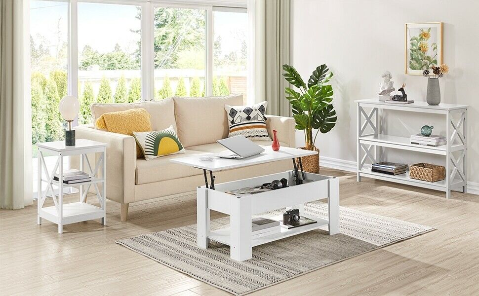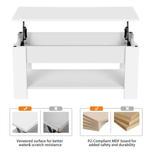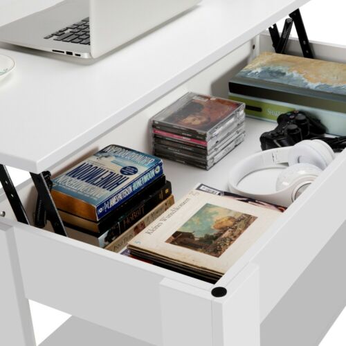 Tavolino da Caffè da Salotto Sollevabile Tavolo Moderno Bianco Contenitore