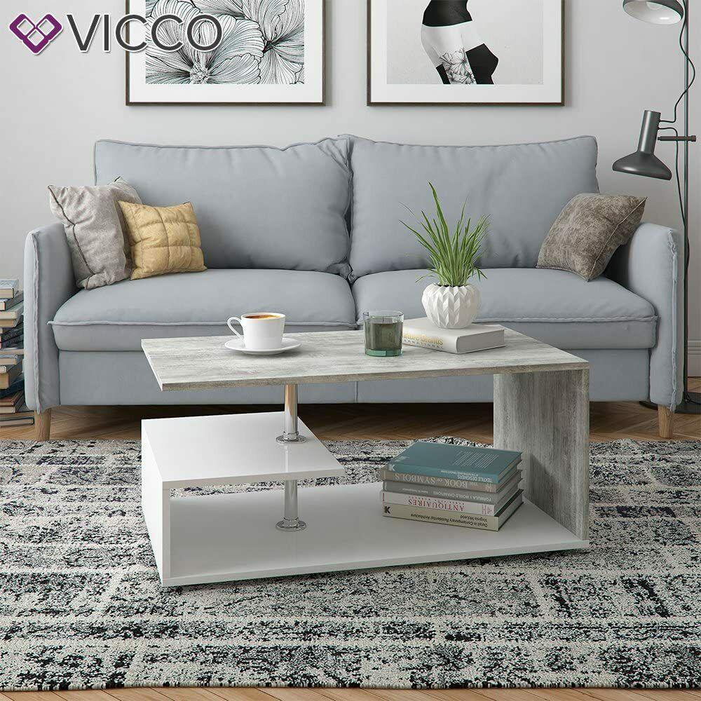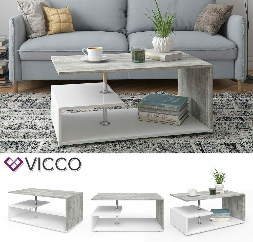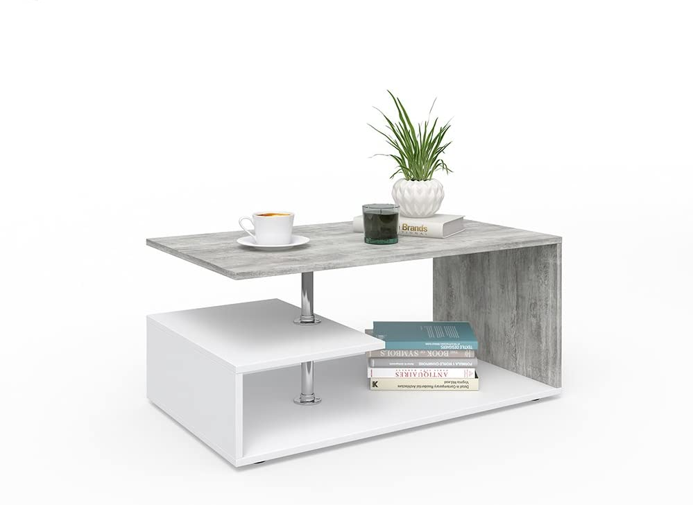Tavolino da Divano Tavolino da Salotto Bianco Cemento Guillermo 91x52